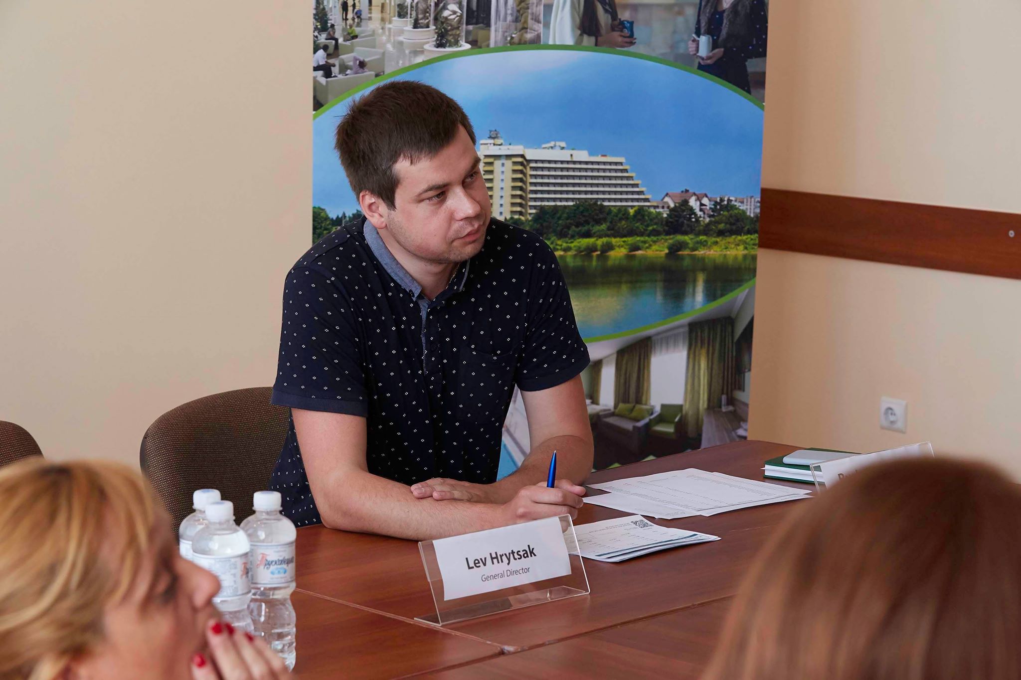Спочатку керівник оздоровниці Лев Грицак розповів гостям про лікувальні фактори курорту Трускавець, про «Нафтусю» та інші цілющі води (14 джерел), про діагностично-лікувальну базу ГКК «Карпати». Він наголосив на тому, що в ціну путівки входить проживання, триразове харчування за системою «шведський стіл», діагностика (клінічна та біохімічна лабораторія, шлункове та дуоденальне зондування, ректороманоскопія, електрокардіографія), консультації лікарів, велика кількість лікувальних процедур (мінеральні ванни, озокерит, механічний масаж, кишкові та гінекологічні зрошення, фізіотерапія, ентеральна оксигенотерапія, інгаляторій та інше), басейн, сауна, тренажерний зал. За додаткову плату можна отримати й інші діагностичні чи лікувальні процедури (17 параметрів біохімічного дослідження крові, підводний масаж, озонотерапія, спелеотерапія, сухі вуглекислі ванни та багато інших процедур).