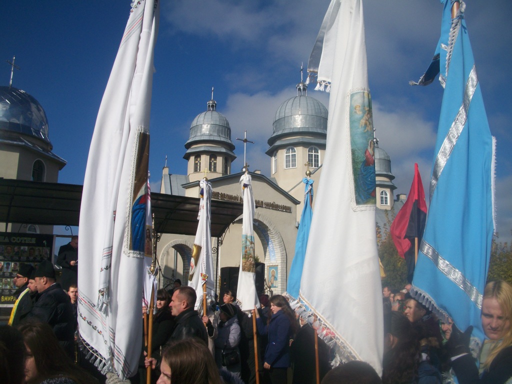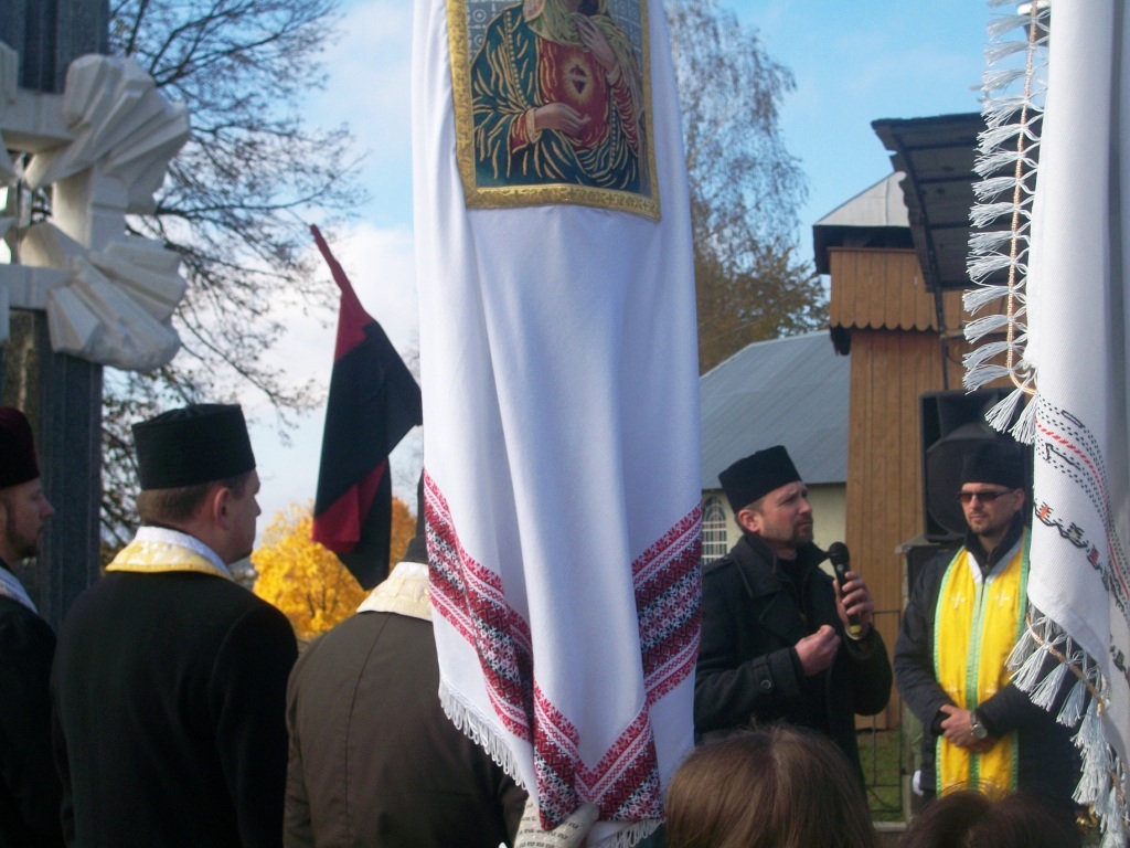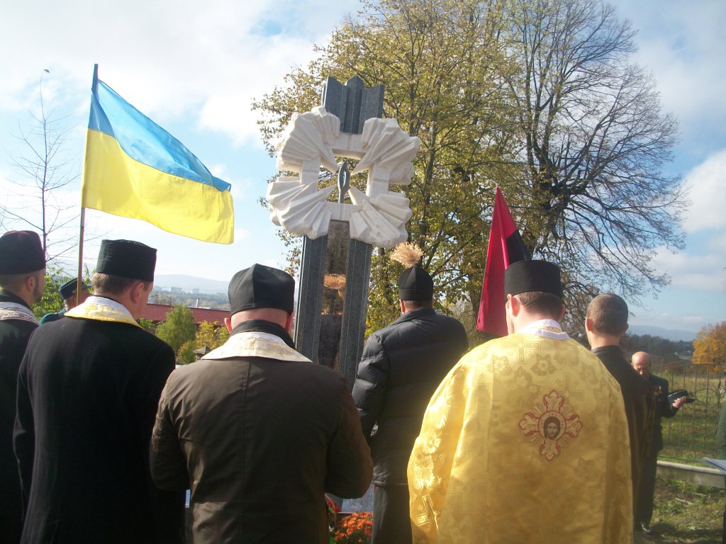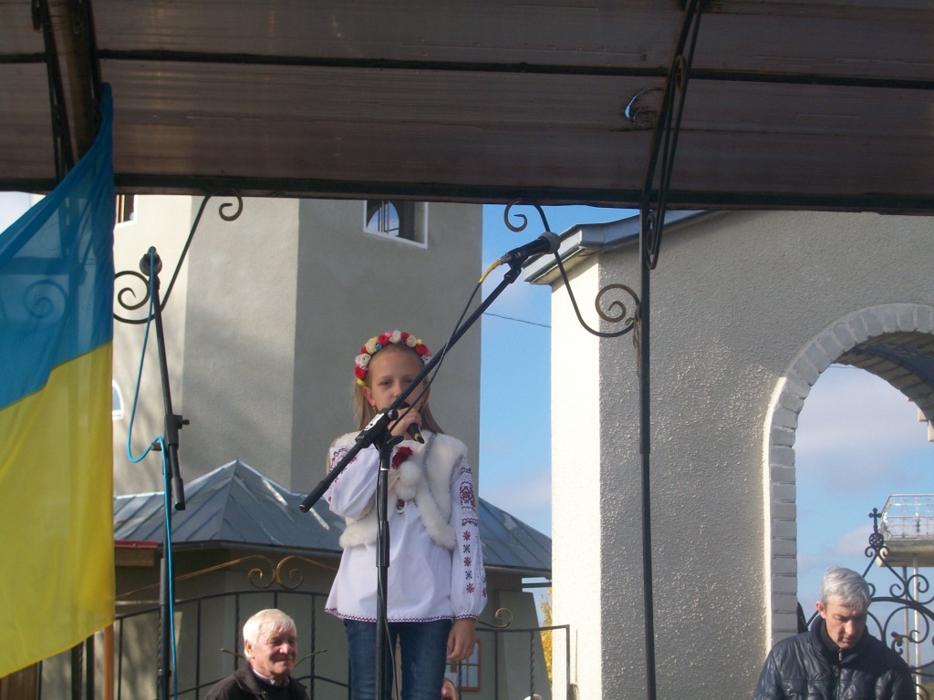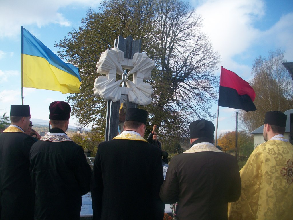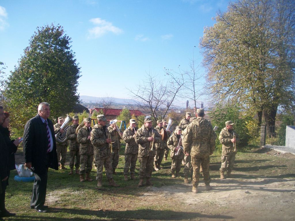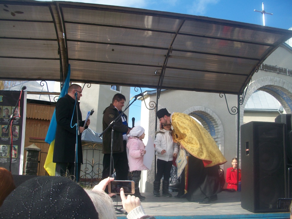 Грає військовий оркестр з Дрогобича. Майорять жовто-сині та червоно-чорні прапори, тріпоче вітер церковні хоругви та листя на деревах. Почесну варту несуть пластуни та сивочолі бійці УПА. Восьмеро священиків освячують хрест-монумент, під яким написи – згадка про всіх Героїв Небесної Сотні. Сумно лине над Колпцем «Плине кача по Тисині», голос ведучої з тремтінням вимовляє прізвища наших земляків, які загинули. Загинули на Майдані, в АТО, і вдома – від отриманих травм. Ігор Борис, Ігор Дідач, Дмитро Лесешак, Михайло Фарима, Сергій Шевчук, Артур Гулик, Степан Бродяк, Андрій Шіхт і це далеко не повний перелік… Люди плачуть, витирають очі і схлипують. Це ж наші брати, сусіди, друзі, їх так нагло, несподівано забрала смерть.