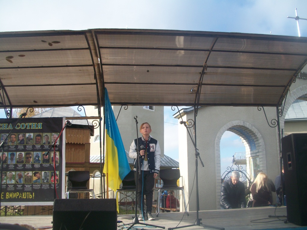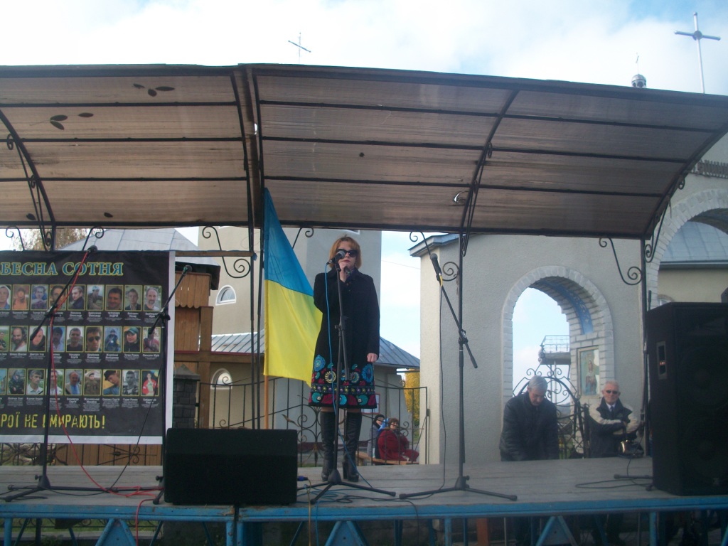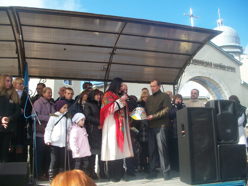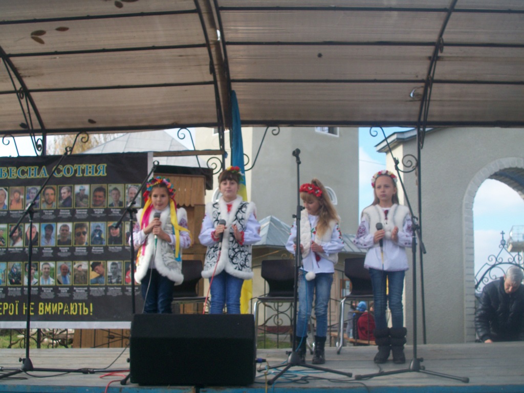 Село Колпець. На горбочку – церква Введення в храм Пресвятої Богородиці. Неділя. 9 година – утреня, 10 – Служба Божа. Після Святої Літургії розпочинаються урочистості відкриття пам`ятника Героям Небесної Сотні, тривають вони з 12.30 до 16.00. Хтось скаже – задовго, забагато. Ні! Не буває забагато часу, приділеного нашим героям. Вони ж бо відклали все і поїхали на Майдан. Поїхали за покликом серця, знаючи, що можуть не повернутися…