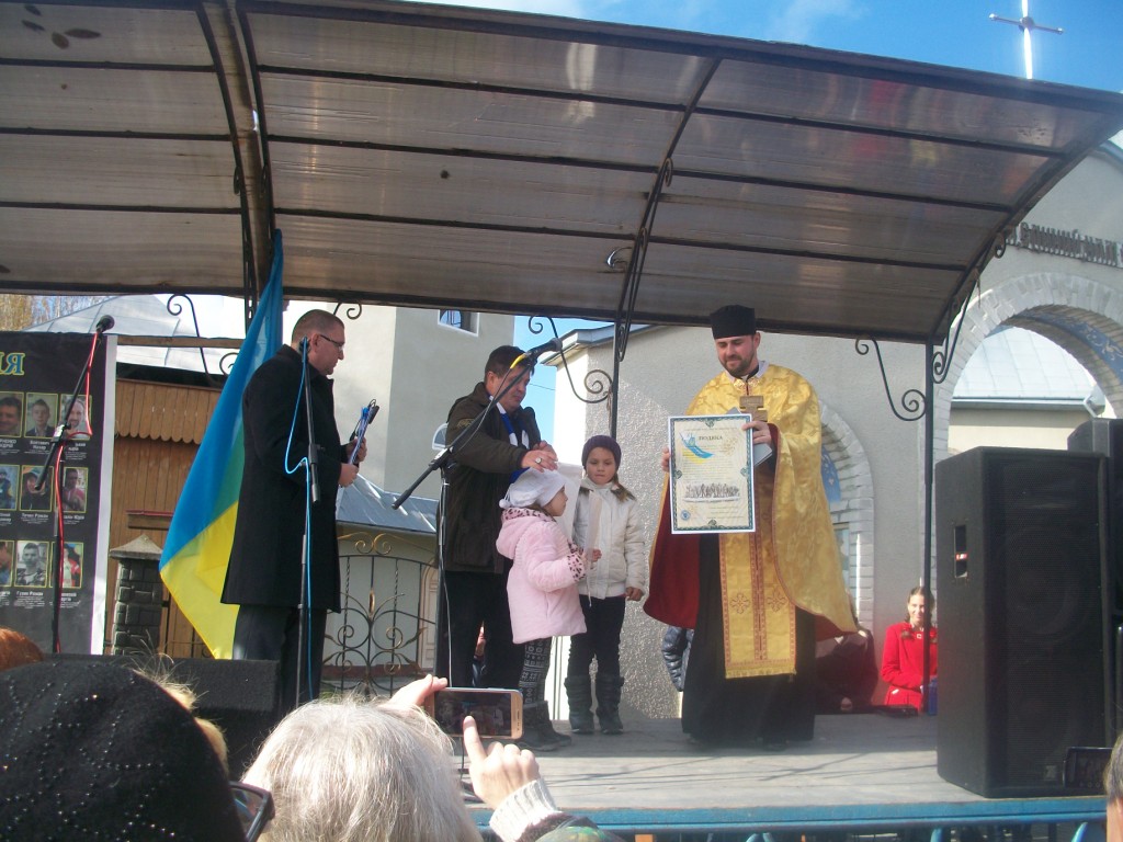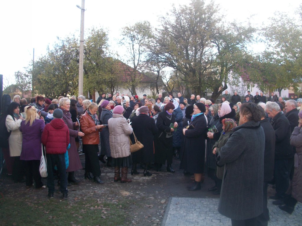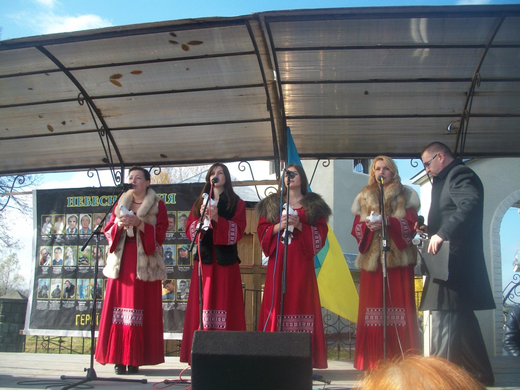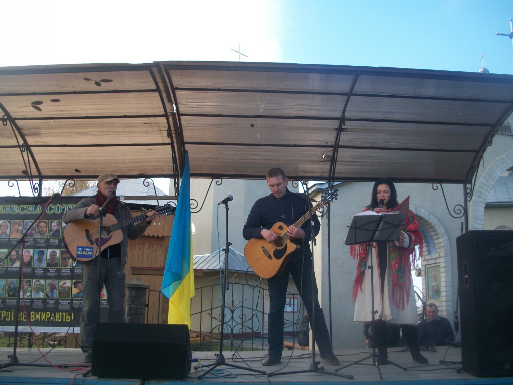 Село Колпець. На горбочку – церква Введення в храм Пресвятої Богородиці. Неділя. 9 година – утреня, 10 – Служба Божа. Після Святої Літургії розпочинаються урочистості відкриття пам`ятника Героям Небесної Сотні, тривають вони з 12.30 до 16.00. Хтось скаже – задовго, забагато. Ні! Не буває забагато часу, приділеного нашим героям. Вони ж бо відклали все і поїхали на Майдан. Поїхали за покликом серця, знаючи, що можуть не повернутися…