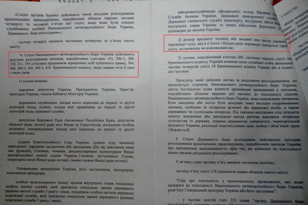 Наприклад: читаємо законопроект – пункт 4 перехідних положень і дізнаємося, що слідчі національного антикорупційного бюро України здійснюють досудове розслідування злочинів передбачених статтею 191, якщо розмір предмету злочину або завданої ним шкоди дорівнює або перевищує суму, якав 500 разів перевищує мінімальну заробітну плату (600 тисяч на сьогодні).