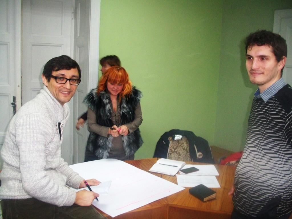 Цікаво та інформативно проминуло більше ніж чотири години зустрічі з Оксаною Дащаківською. Присутні на тренінгу не лише ознайомилися з новими термінами та механізмами діяльності, а й взяли участь у кількох практичних заняттях. Одне з них – чітке визначення зацікавлених сторін, партнерів та ворогів ініціативи. Інше – SWAT-аналіз. Ще інше – механізми та інструменти впливу на маси.