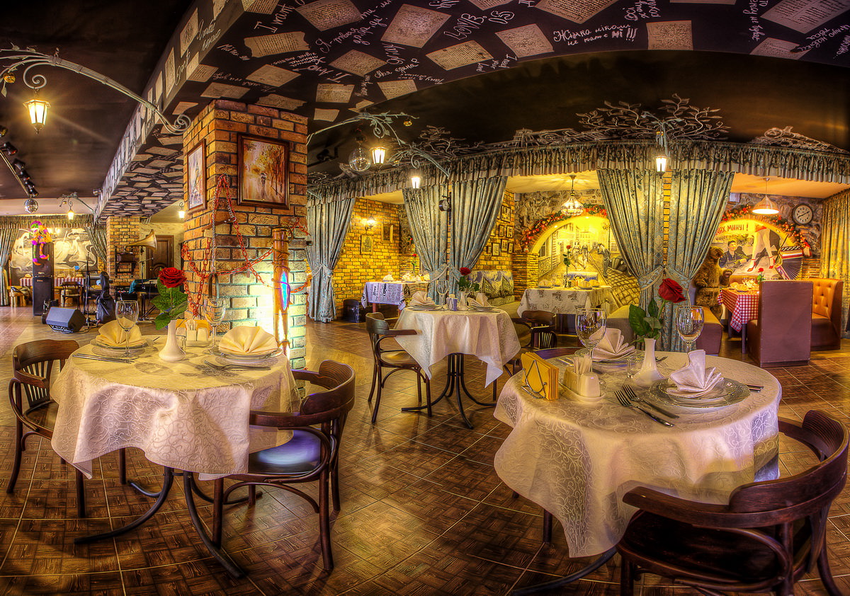 Про красу арт-ресторану можна говорити дуже багато. Якщо коротко – є 11 суперових кабінок, кожна з яких обставлена у стилі якоїсь країни чи міста. Перераховую: Японія, Франція, США, Лондон, довоєнна Галичина, СССР, козацька Україна, Куба, Близький Схід… Заходячи в ту чи іншу кабінку, машиною часу та простору за одну мить потрапляєш у одне з вищевказаних місць. Та краще один раз побачити, ніж сто разів послухати.