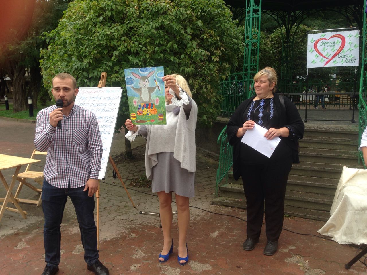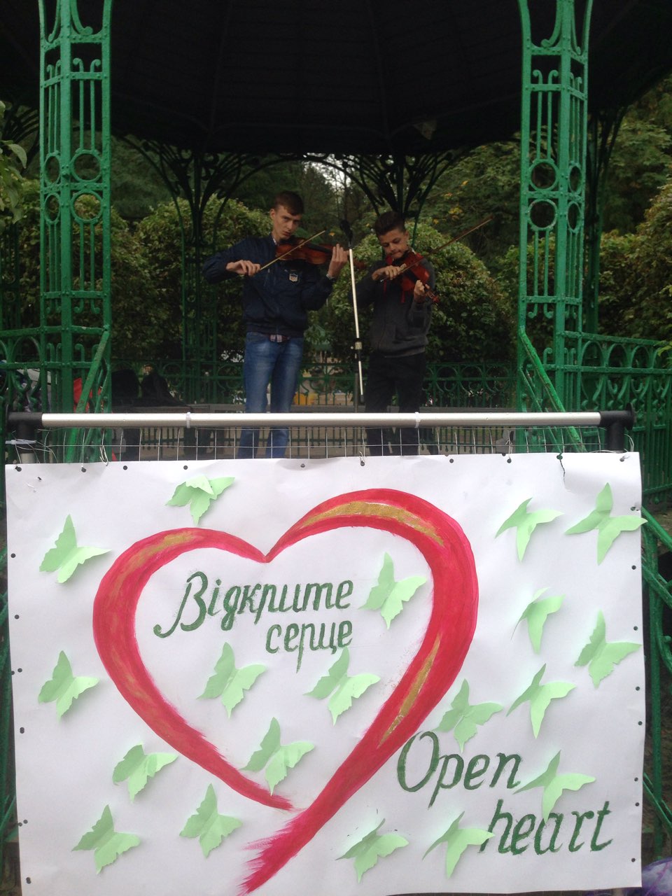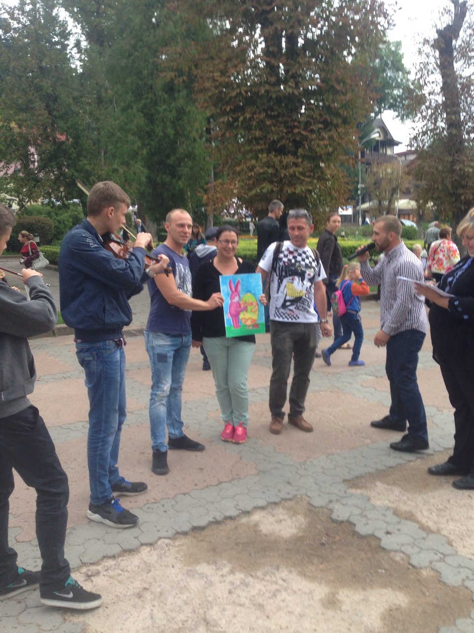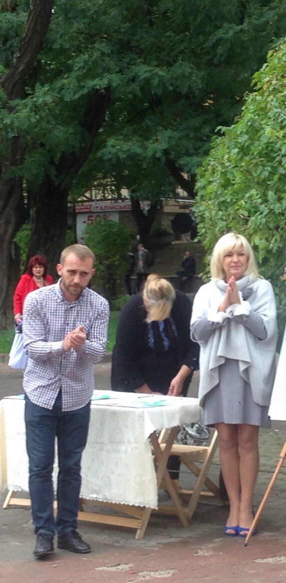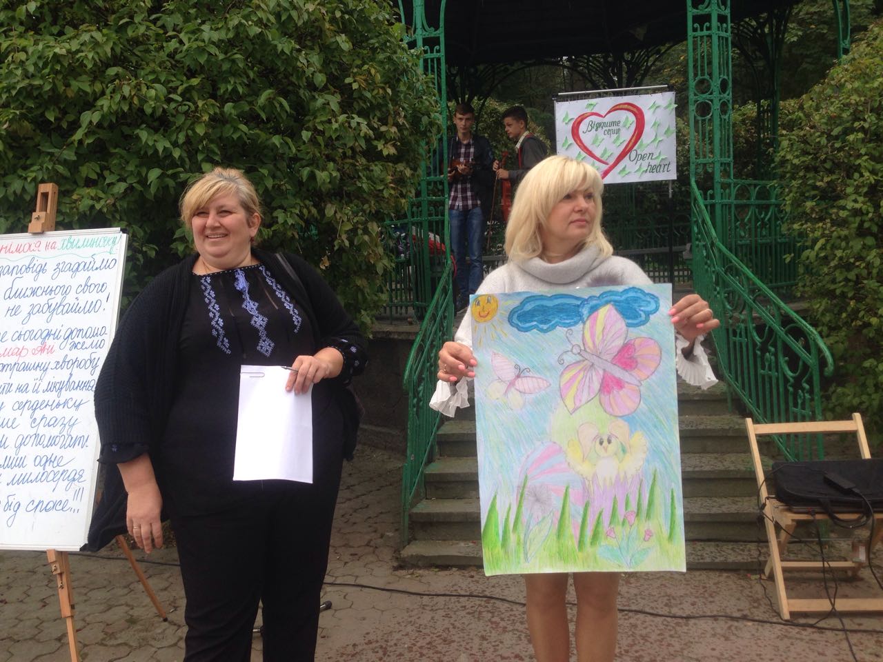 Щоб похмурий та трохи дощовий обідішній час став веселіший та цікавіший, до нашого аукціону долучилися юні та вже знані митці. Свої пісні слухачам дарували трускавчанка Оксана Баняс та лауреат конкурсів Настя Фрідрак. Чаруючі та задушевні мелодії звучали у виконанні скрипалів, студентів музичного училища, закарпатця Романа Капцоша та стриянина Володимира Когута. Вірші Івана Франка про силу духу та любов до ближнього читав мешканець Яворівського району п. Ярослав Дашко, який з висоти своїх поважних років звернувся до всіх зі словами: “Бійтеся байдужості та не пускайте її в своє серце. Це маленьке дитя, яке потребує нашої допомоги, повинно відчути, що перед добром все лихе пропадає”.