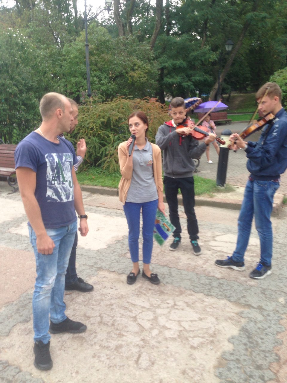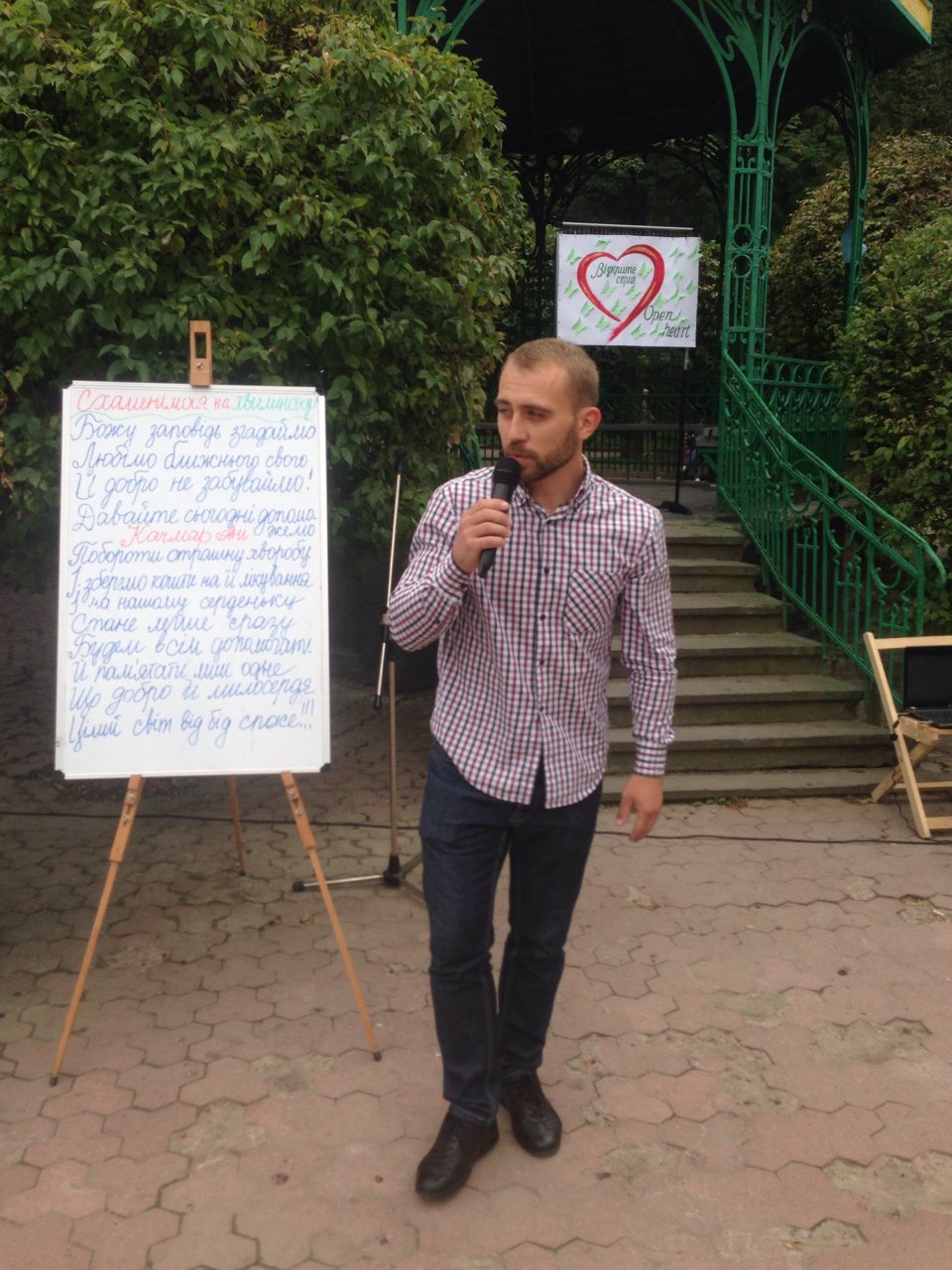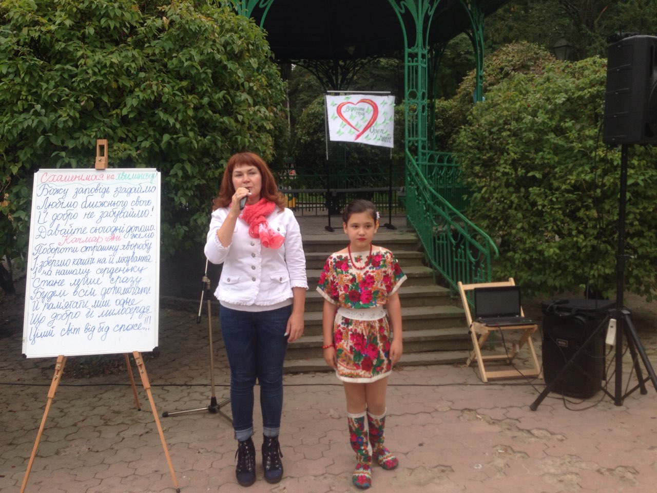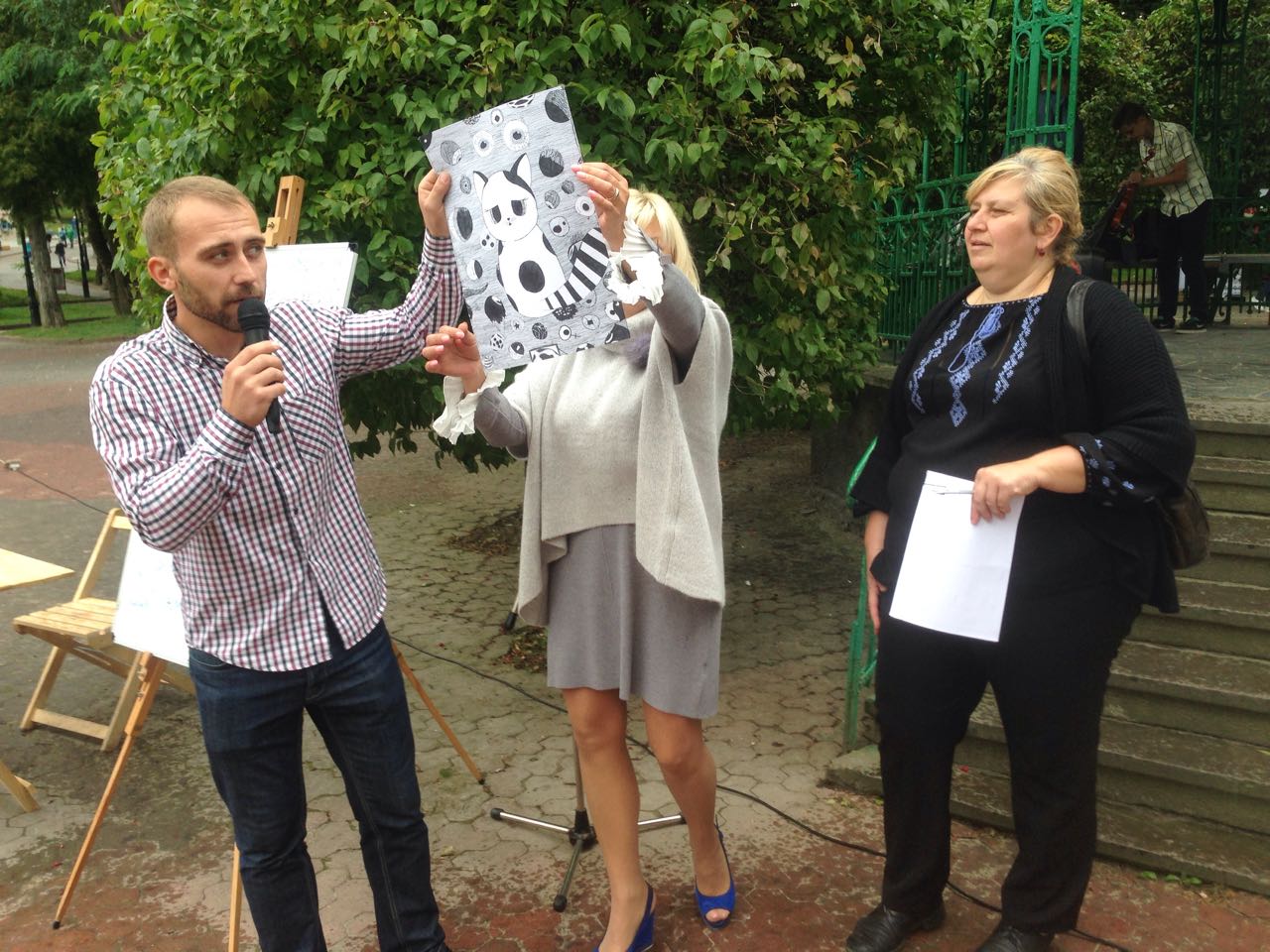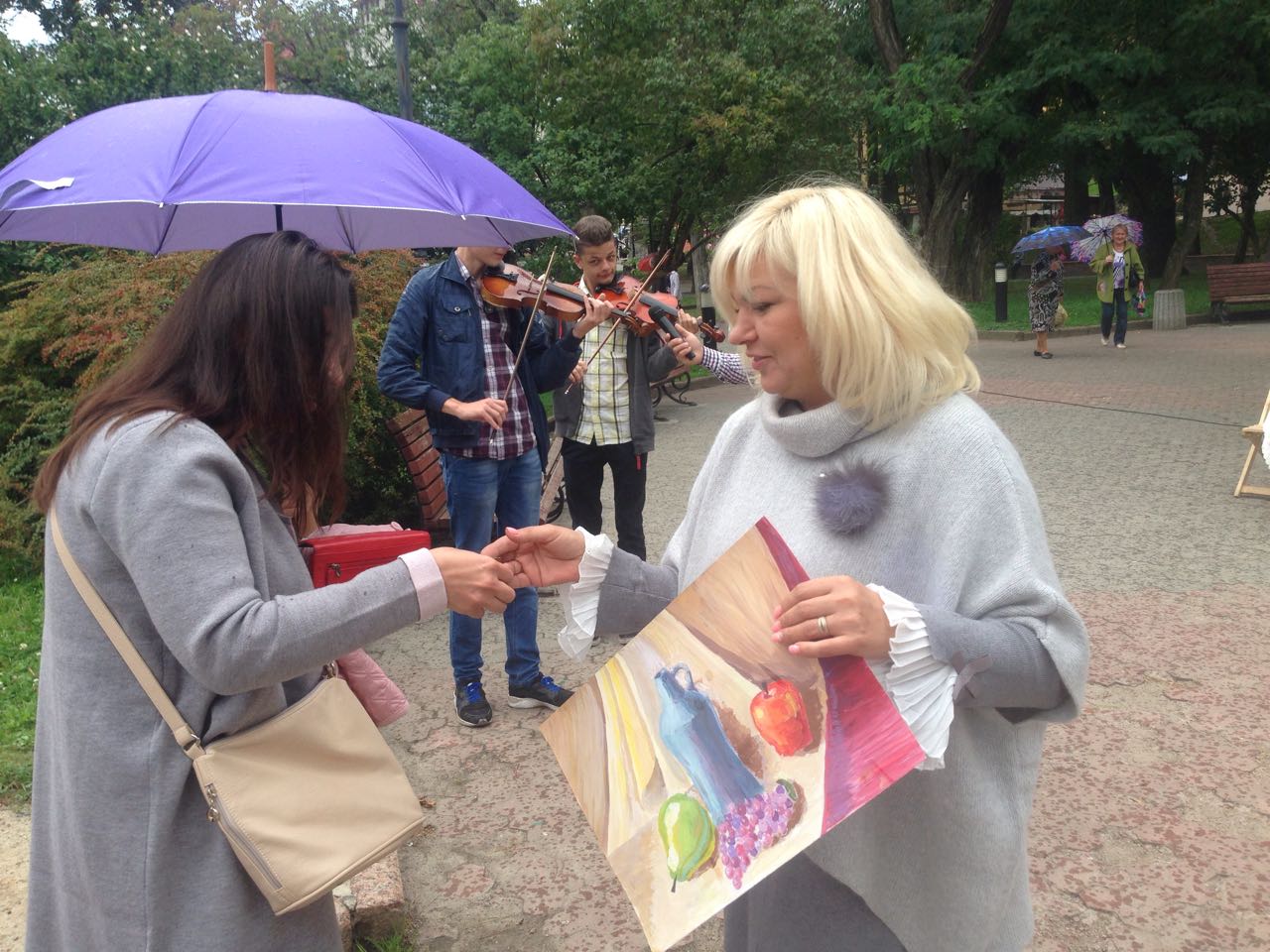 Щоб похмурий та трохи дощовий обідішній час став веселіший та цікавіший, до нашого аукціону долучилися юні та вже знані митці. Свої пісні слухачам дарували трускавчанка Оксана Баняс та лауреат конкурсів Настя Фрідрак. Чаруючі та задушевні мелодії звучали у виконанні скрипалів, студентів музичного училища, закарпатця Романа Капцоша та стриянина Володимира Когута. Вірші Івана Франка про силу духу та любов до ближнього читав мешканець Яворівського району п. Ярослав Дашко, який з висоти своїх поважних років звернувся до всіх зі словами: “Бійтеся байдужості та не пускайте її в своє серце. Це маленьке дитя, яке потребує нашої допомоги, повинно відчути, що перед добром все лихе пропадає”.