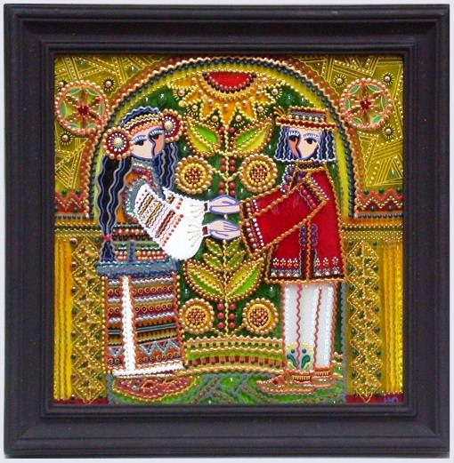 Викладачі Косівського коледжу декоративно-прикладного мистецтва, члени Національної спілки майстрів народного мистецтва України подружжя Юсипчуків працює у техніці декоративного малярства на склі з 1996 року. Попри те, що дана техніка – традиційна, у митців вона має сучасне авторське трактування. Їхні роботи приваблюють таємничістю трипільських символів і знаків, що переплітаються у загадковій неповторній композиції. Особливою сторінкою творчості подружжя є Гуцульщина, передана яскравими та соковитими барвами традиційних розписів.