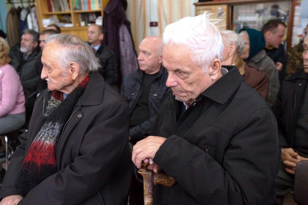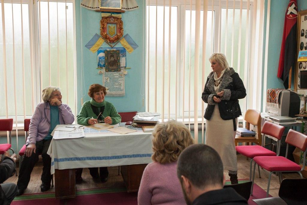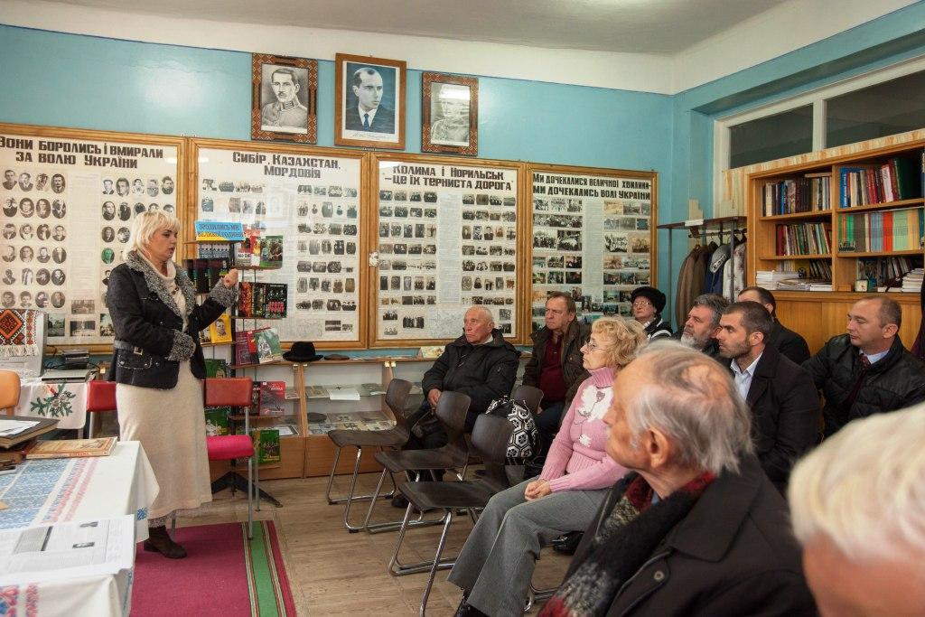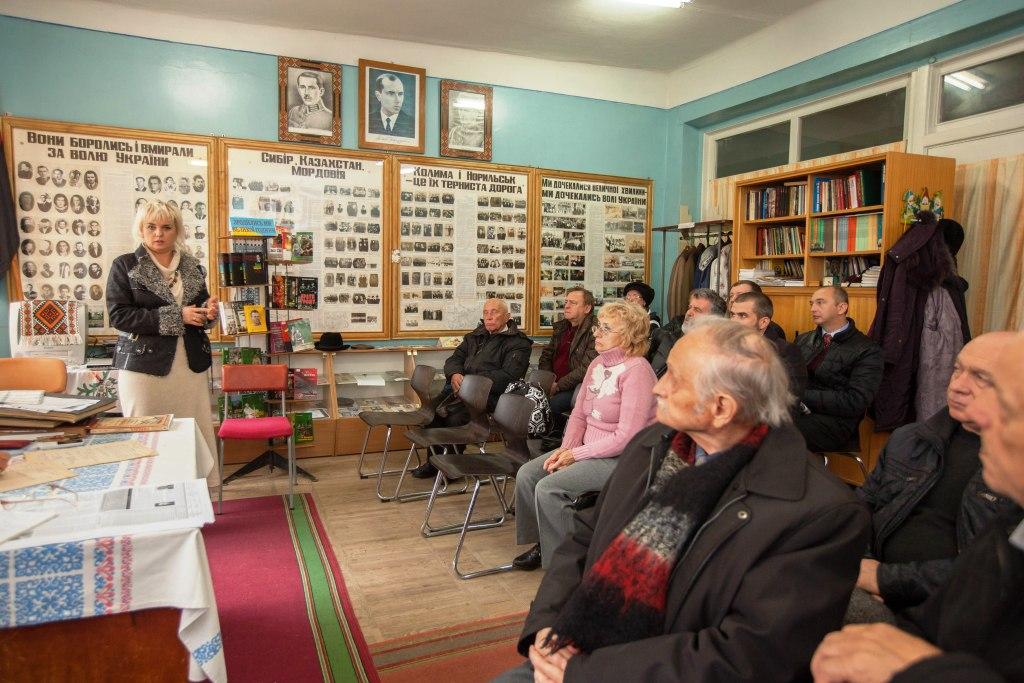 Фото з жовтня 2015 р. Зустріч Мирослави Грицак (тоді ще Мацько) з політв’язнями та репресованими Стебника у кімнаті-музеї.