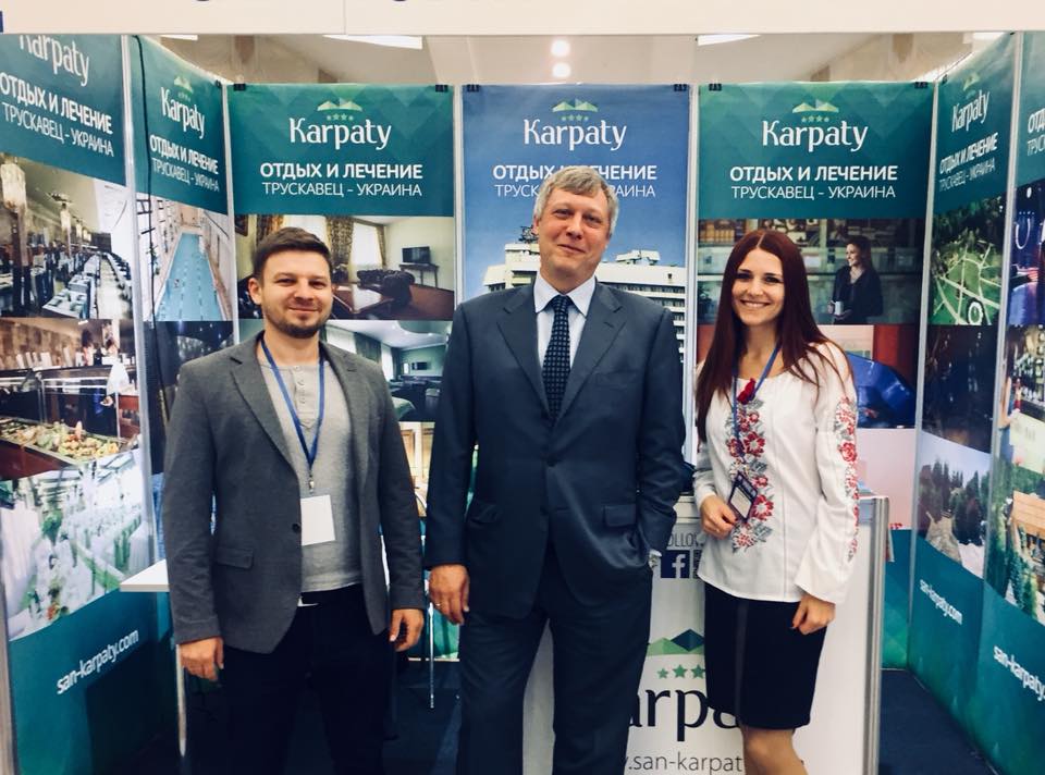 Цього тижня на теренах пострадянського простору проходять дві важливі туристичні події – міжнародні виставки в Білорусі та Казахстані. В обидвох заходах беруть участь представники Трускавецького готельно-курортного комплексу «Карпати», розповідаючи про наш курорт, його цілющі мінеральні води, переваги та доступність лікування та відпочинку. Так, в столиці Казахстану місті Астані перебуває заступник генерального директора «Карпат» з питань маркетингу та менеджменту Руслан Пристай, натомість менеджери оздоровниці Віта Петрів та Іван Акулов спілкуються з гостями міжнародної туристичної виставки в Мінську.