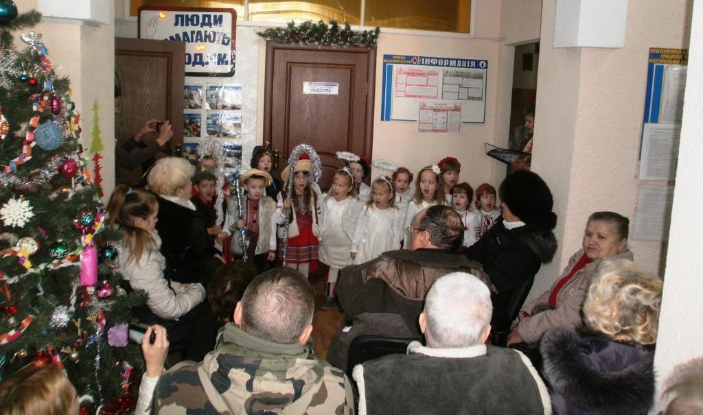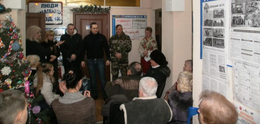 Директор терцентру Олена Пилат привітала присутніх з Новим роком та Різдвом Христовим, та запросила до спільної молитви за Україну. Нагадала про річницю загибелі кіборгів у Донецькому аеропорту, розповіла про акцію «Рукавички для воїнів АТО». Гостями свята були заступник міського голови Олександр Ткаченко, начальник управління праці та соціального захисту населення Віра Ільницька, воїни АТО Роман Буртовий та Вадим Пєчніков. Олександр Ткаченко від імені міського голови привітав всіх з Різдвяними святами та подякував жінкам-волонтерам, які взяли участь в акції «Рукавички для воїна АТО» за теплі речі.