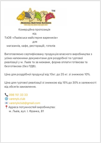 Комерційна пропозиція від Львівської майстерні вареників