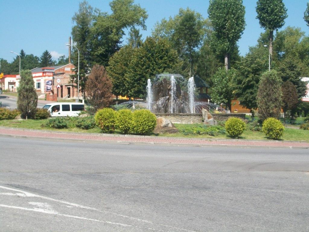 Приємно, що при в`їзді в Трускавець, а саме на дрогобицькому кільці, нарешті запрацював фонтан. Але є одне «але». Очевидно, варто відмовитися від так званого «грибка» у центрі фонтану, оскільки візуально та естетично набагато краще сприймався б саме високий струмінь води у фонтані в обрамленні менших струменів, які сприймаються досить добре. На рівні підсвідомості високий струмінь сприймається як показник сили, впевненості, напористості, перемоги, активної чоловічості. Фонтан у формі грибка – радше символ слабкості, повільності, пласкості, застою, пасивної жіночності.