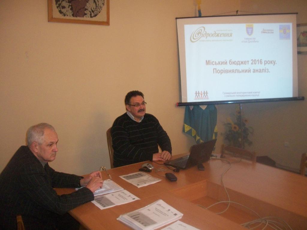 29 лютого у Дрогобичі відбувся круглий стіл на тему «Міський бюджет 2016 року. Регламенти міської ради, виконкому та положення постійних комісій ради. Усунення корупційних складових». Організував та провів захід Моніторинговий комітет з раннього попередження корупції – програмна ініціатива громадського об’єднання товариства “Юрій Дрогобич”, яка здійснюється за підтримки Міжнародного фонду “Відродження”. Партнерами та учасниками громадської ініціативи є громадські організації “Дрогобицька громада” та “Дрогобицький Майдан”.