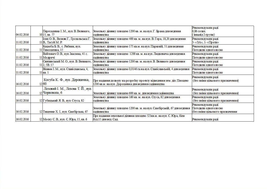 2. Заборонити виділення земельних ділянок під садівництво в кварталах садибної забудови.