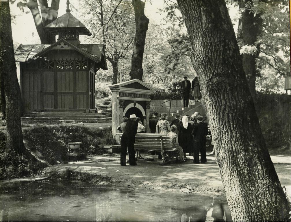 19. Схований за деревами павільйон є джерелом «Едвард». Це джерело являє собою озокеритову шахту з боковим штреком, заповнену мінеральною водою.