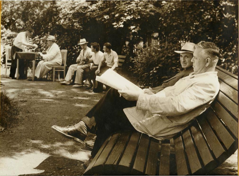 32. Відпочиваючі на майданчику санаторію № 1.