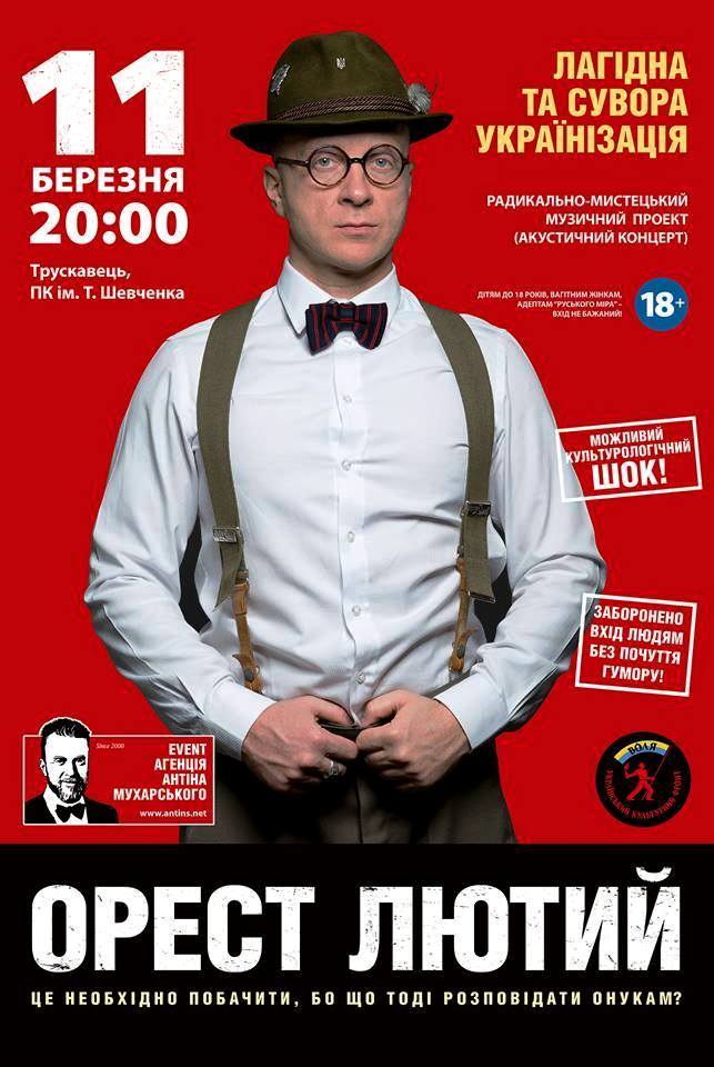 Антін Мухарський: Наступний альбом Ореста Лютого, який має вийти на початку 2014 року, буде називатися “Сувора українізація”. Від осені року нинішнього в YouTube будуть з’являтися пісні з цього проекту. Дивіться, слухайте, насолоджуйтесь… Дякую.