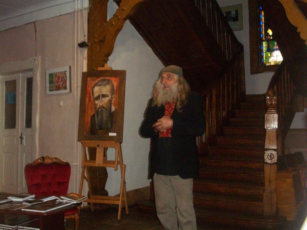 – Лев Скоп – не просто талановитий художник, а й прекрасний педагог, – розповідає про автора виставки Олена Білас-Березова. – Він – великий креативний організатор у проведенні конференцій, автор книг про Пересопницьке Євангеліє та церковне малярство в Галичині. Лев Скоп більше знаний як реставратор, іконописець, та сьогодні ми презентуємо його як художника-гумориста, художника-сатирика, художника-філософа, художника-екзистенціаліста, художника зі своїм особливим, авторським поглядом на життя, поглядом у замкову щілину шафи…