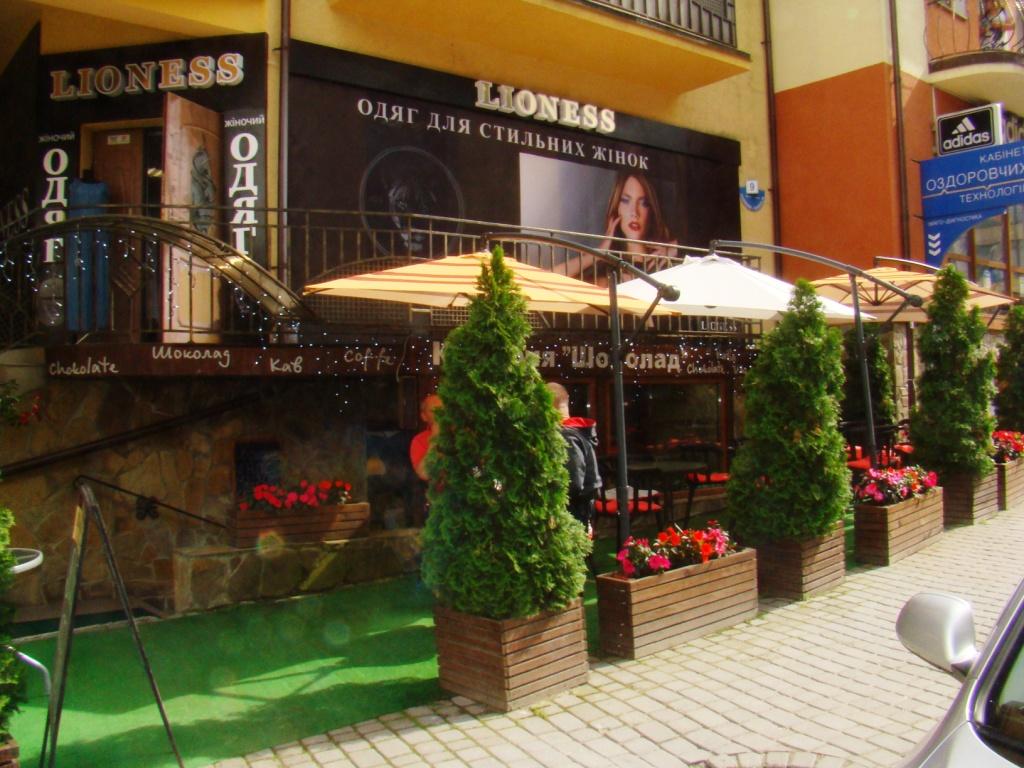 Готель-піцерія «Дворик Лева». Українська та середземноморська кухня. Добра піца. М. Трускавець, вул. Різняка-Макомацького, 2 (район залізничного вокзалу). Тел. 067-320-53-88.