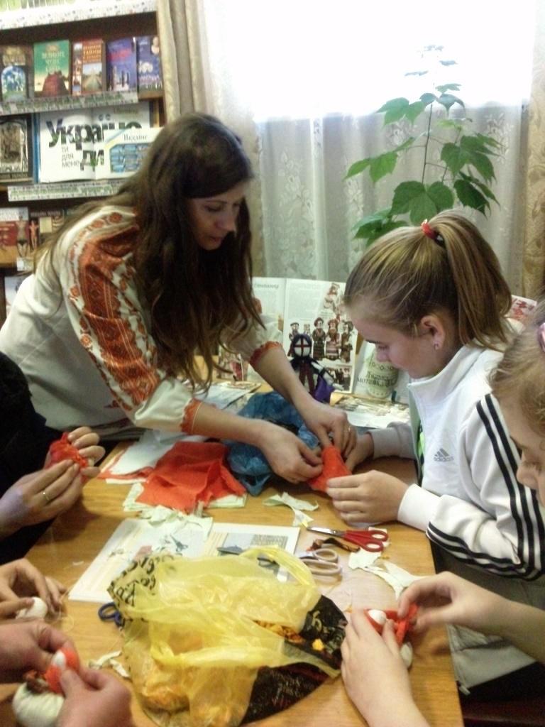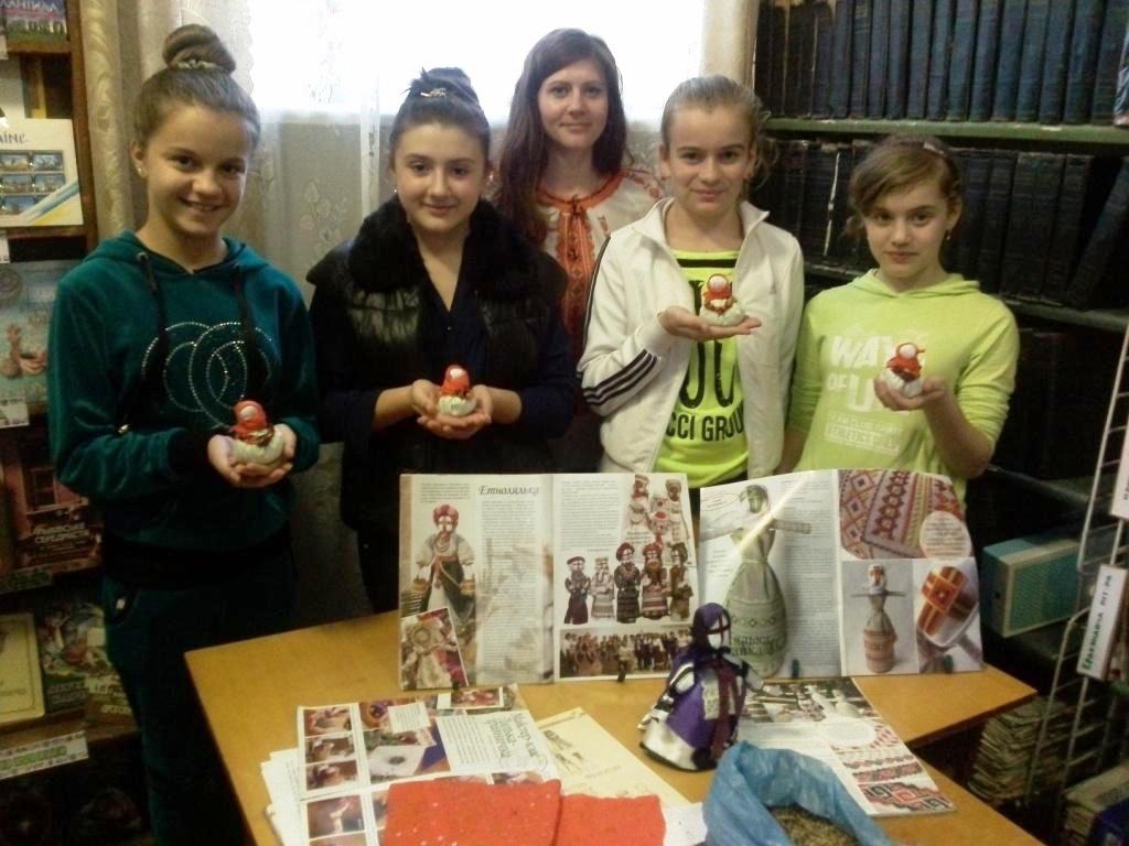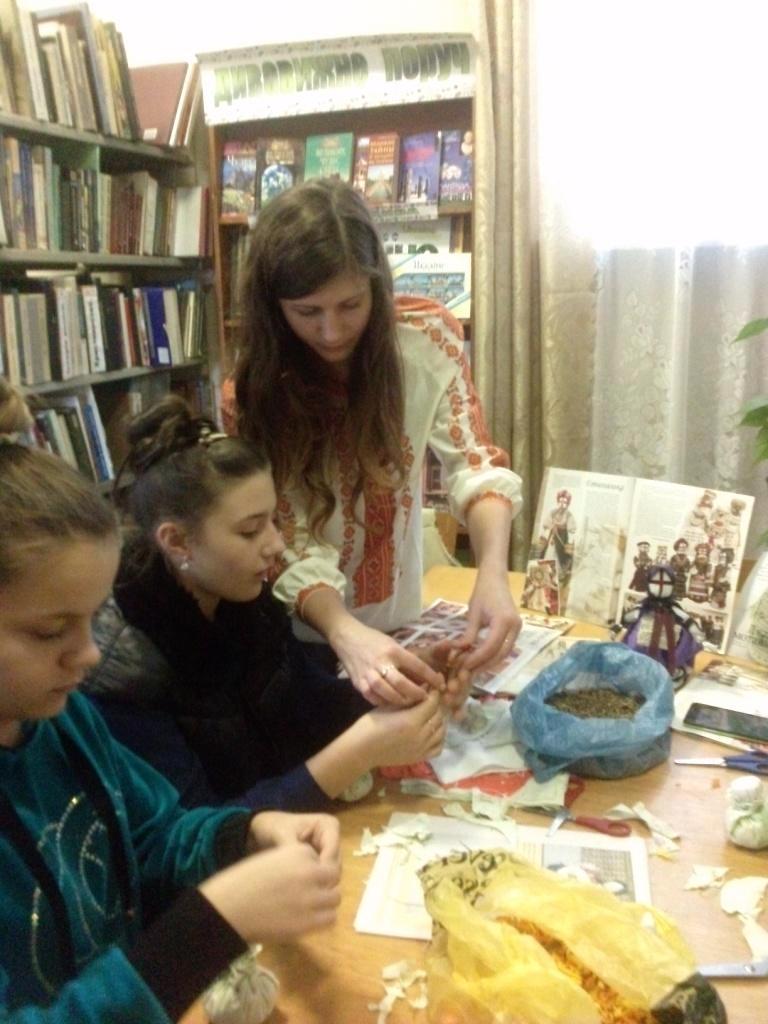І щоб не переривався оцей зв’язок поколінь, 16 жовтня у бібліотеці-філії №1 для юних читачів бібліотеки пройшла народознавча година «Лялька-мотанка як народний оберіг». На заході бібліотекар Наталя Іваночко розповіла дівчатам про історію створення різних видів ляльки-мотанки, про її значення у житті людини та провела цікавий майстер-клас з виготовлення мотанки. Для майстер-класу було обрано просту модель – ляльку-травничку. Такий оберіг буде не тільки оберігати та прикрашати оселю, але й наповнювати її легким ароматом літніх трав увесь рік.