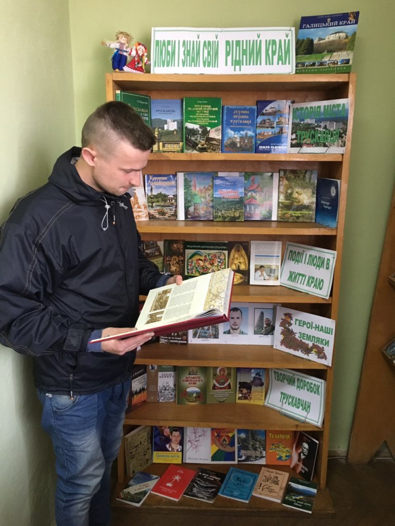 5 квітня у центральній міській бібліотеці м. Трускавця відбулася презентація книжкової виставки «Люби і знай свій рідний край». Провідний бібліотекар обслуговування юнацтва Олександра Пфайфер ознайомила присутніх з історією міста Трускавця, з героями-земляками, які віддали своє життя за нас, за наше краще майбутнє, з людьми, які внесли свій вклад у розвиток міста-курорту, а також про творчий доробок наших трускавецьких поетів та письменників.