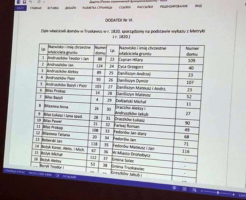 Надзвичайно цікавими у виступі професора Леоніда Тимошенка були його «ілюстрації» документальними джерелами. Одне з раніше непублікованих джерел, рукописний путівник 70-х рр. ХІХ ст. з описом Трускавця, вміщено у згаданому вище «Східноєвропейському історичному віснику».