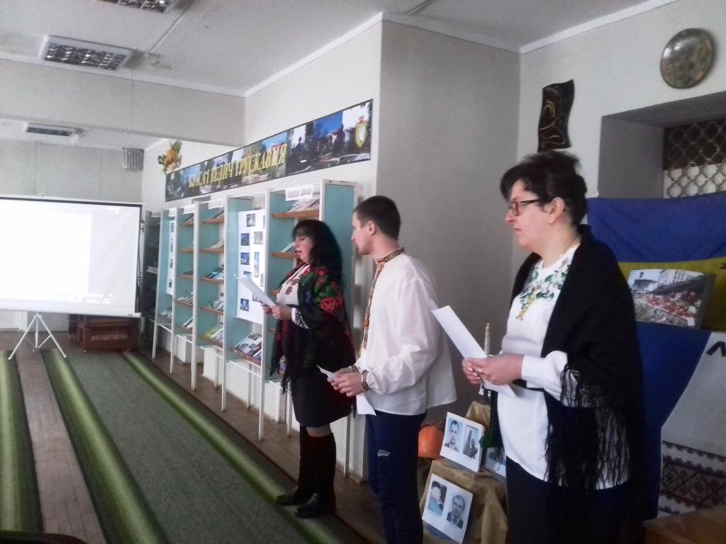 21 лютого у центральній міській бібліотеці Трускавця відбулася година пам’яті «Майдан болю і печалі», присвячена Героям Небесної Сотні. До сліз зворушили присутніх музичні твори :«Молитва на Різдво», «Я сьогодні від вас від’їжджаю», тужлива мелодія польського гурту «Еней». Відеохроніка подій Майдану в Києві додала кожному відваги, сили духу і жертовності. Кожен із присутніх мав змогу переглянути інсталяцію «Ми вас пам’ятаємо», на якій були представлені світлини Героїв Небесної Сотні.