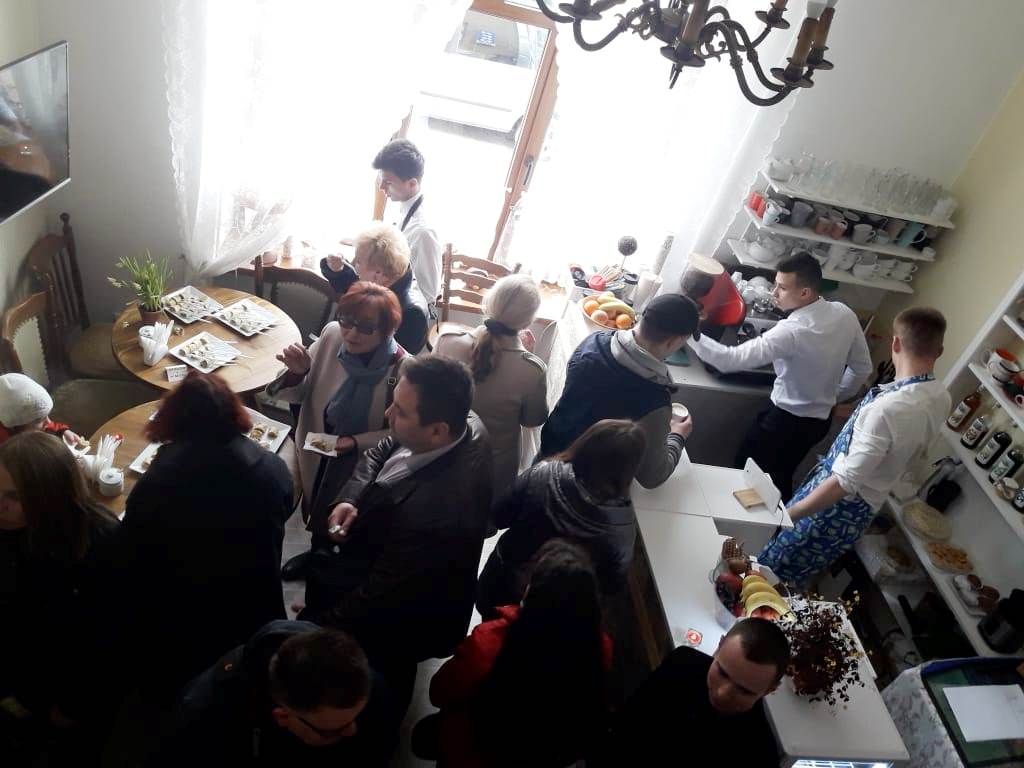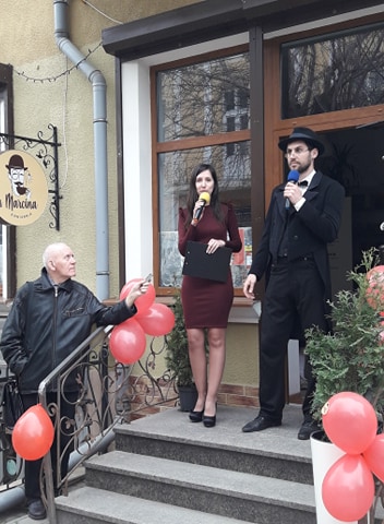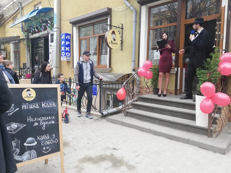 А тепер – про подію. Відкриття кав`ярні «У Марціна» проходило за участі … Марціна. Так-так, той самий дрогобицький ліхтарник Марцін в образі елегантного молодого чоловіка в капелюсі разом зі своєю супутницею прийшов запросити дрогобичан на каву. Кава тут – шикарна, кажуть любителі. Чому? Бо господиня закладу має свої власні рецепти її приготування, назбирані по всіх усюдах – від Бразилії до Польщі, від Туреччини до Відня та Дрогобича.