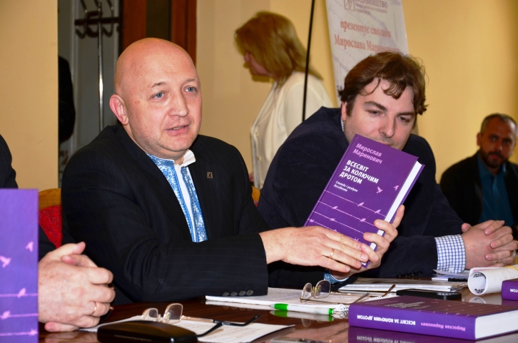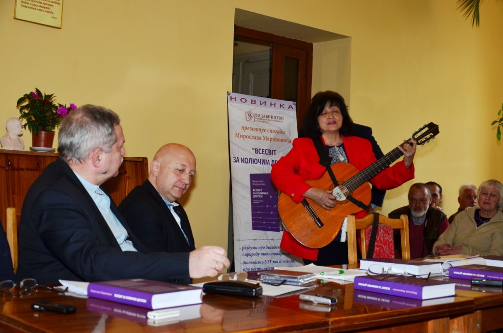 Мирослав Маринович. В`язень-дисидент. Член та один із засновників Української Гельсінкської Групи. Заарештований у 28 років, на волю вийшов у 38 років. Великий моральний авторитет – про це свідчила надзвичай позитивна атмосфера, яка панувала на презентації. Позитиву додавали і музичні перерви, організовані Союзом Українок – виконання на скрипці мелодії Мирослава Скорика з фільму «Високий перевал» та дві пісні на слова Ірини Сеник (Героїні Світу, політв’язня) у виконанні відомого барда, дрогобичанки-волонтерки Лілії Кобільник. Затамувавши подих, слухали присутні ці слова: