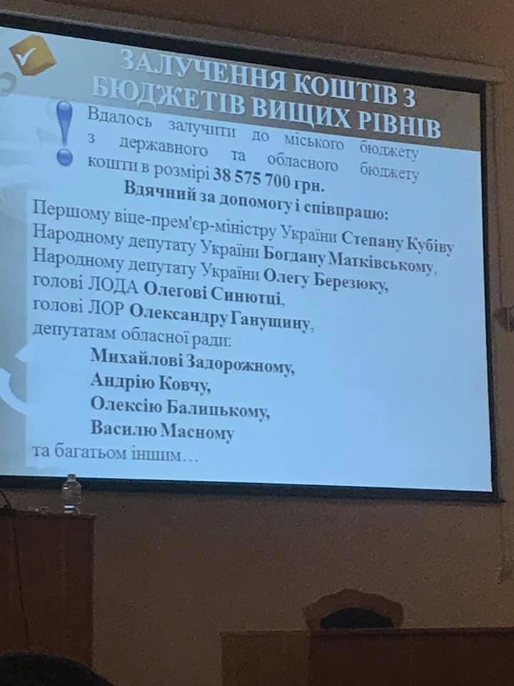 Найперше Ігор Романович подякував своїй команді, котра допомагає йому реалізувати проекти, та всім, хто вірив та підтримував. Кілька разів протягом звіту лунали слова вдячності на адресу голови Львівської ОДА Олега Синютки, депутатів облради від Дрогобиччини, а особливо нардепа Богдана Матківського, котрий, до речі, був присутнім у залі.
