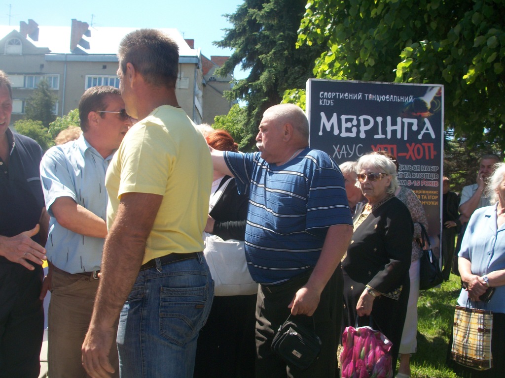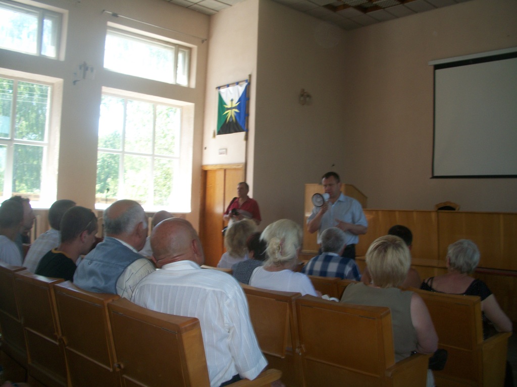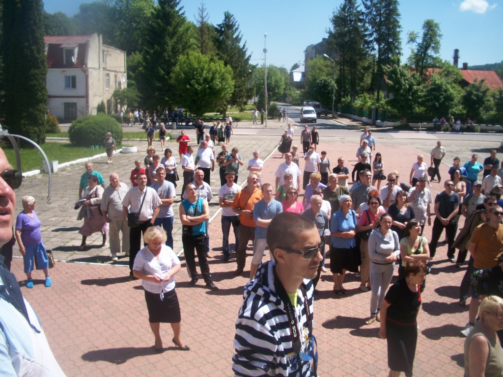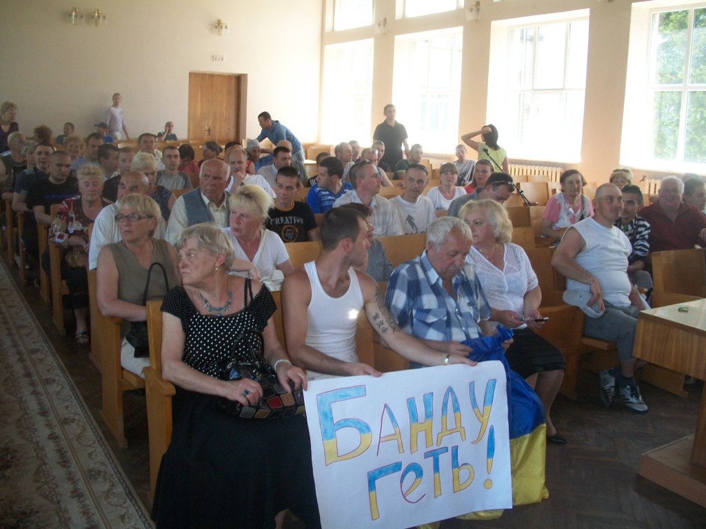Перед міською радою їх вже чекав наряд міліції. Семеро (якщо не більше правоохоронців) відмовилися пропускати всіх до мерії, мотивуючи тим, що в приміщенні є виборча документація. Кілька представників громади пересвідчилися, що міського голови в будівлі немає. Цікаво, що вони не змогли зайти в жоден із кабінетів, всюди було зачинено, хоча з вікон визирали, а кажуть, що навіть показували язики, окремі чиновниці. Оскільки годинник показував 13.29 (час обіду), то вирішили мера все-таки дочекатися. Цей час багато хто використав, щоб дати коментар оператору телекомпанії «Алсет» (м. Дрогобич).