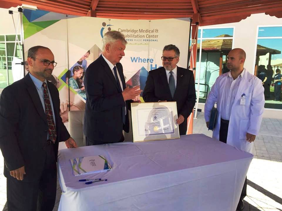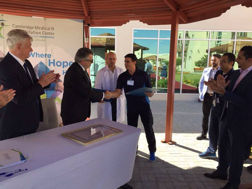7 грудня був підписаний договір про партнерство та відбулася церемонія офіційного відкриття Центру лікування та реабілітації за методом проф. Козявкіна на базі Cambridge Medical & Rehabilitation Center (https://cmrc.com) в місті Ель-Айн (Al Ain) в Об’єднаних Арабських Еміратах. Про це на офіційній сторінці в мережі Фейсбук інформує Міжнародна клініка відновного лікування професора Володимира Козявкіна.