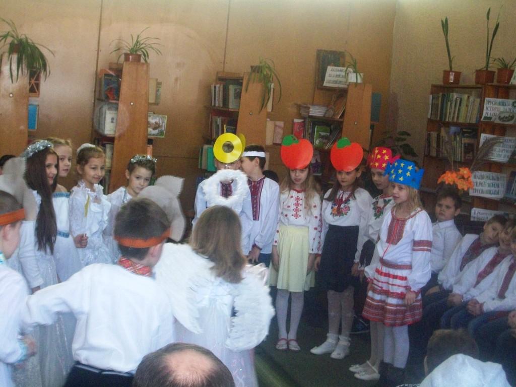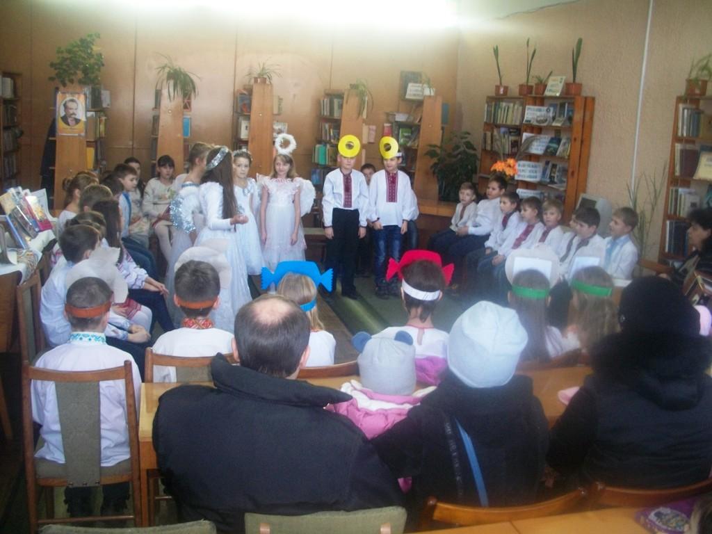 Учні 4-Б класу школи-гімназії (класний керівник Кравець Світлана Богданівна) та 5-А класу СШ № 3 (класний керівник Марія Ярославівна) реалізували цікаву святкову програму за сценарієм Марії Ярославівни та бібліотекаря дитячої бібліотеки, відомої композиторки та виконавиці Олександри Цісінської. Пісні та вірші, гра на скрипці, міні-сценки, очікування святого Миколая тривали трохи більше півгодини. Як і було заплановано, святий Миколай прийшов, традиційно в супроводі ангеликів. Він поспілкувався з дітьми та дав їм невеличкі подарунки-солодощі – чисто символічні, бо справжні подарунки будуть сьогодні вночі.