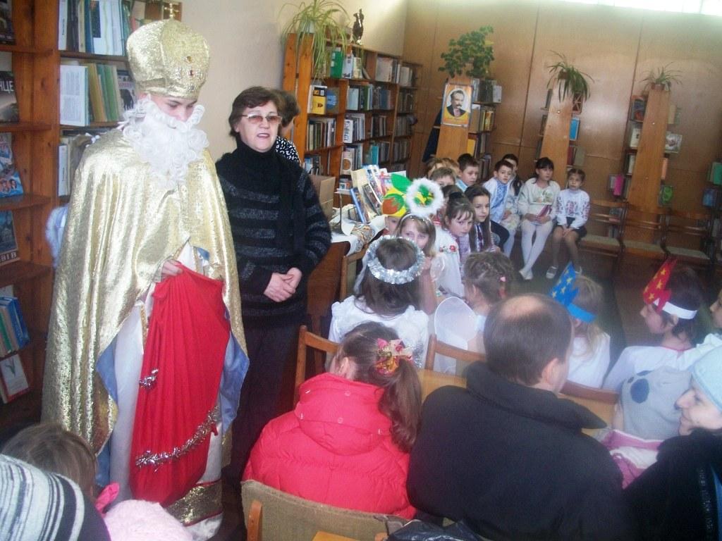 Свято в дитячій бібліотеці пройшло в надзвичайно милій та дружній атмосфері, чому посприяли як вчителі, так і прекрасний організатор, талановитий музикант Олександра Цісінська. З метою залучити дітей до відвідування бібліотеки вона активно співпрацює з школами міста, що дає добрий виховний ефект. Тож весело і гучно лунало «Ой хто, хто Миколая любить…» в бібліотеці, яка є для дітей і місцем зустрічі з книгою, і осередком дозвілля.