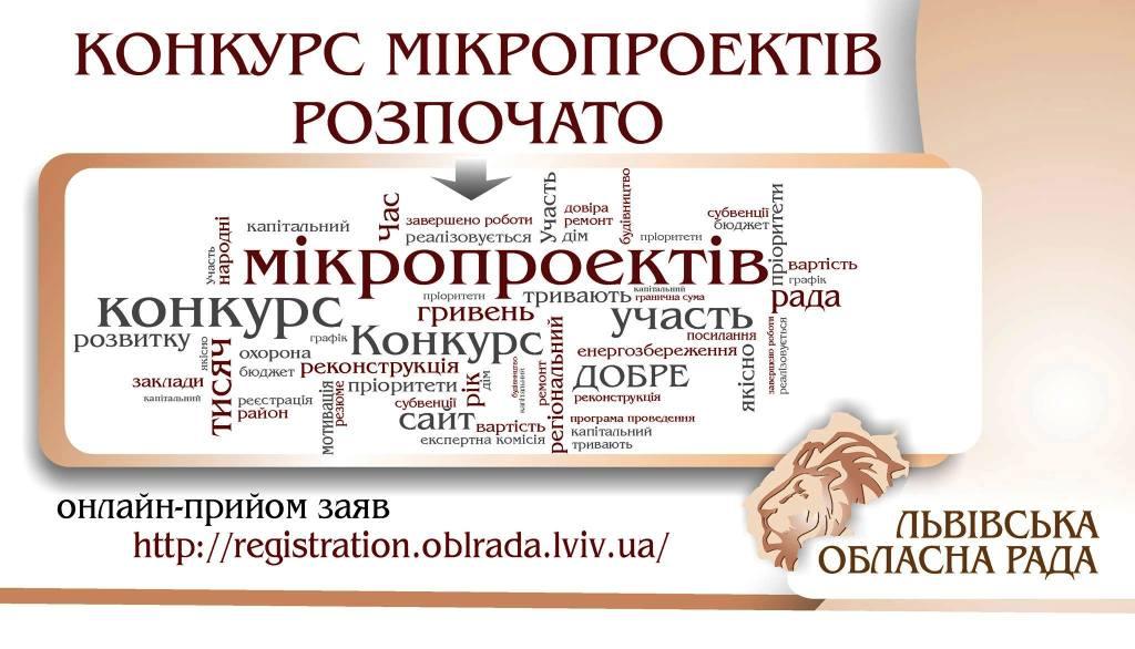 З 1 грудня розпочалась реєстрація на участь в обласному конкурсі мікропроектів місцевого розвитку на 2017 рік. Цьогоріч він має низку особливостей та нововведень. Зокрема, передбачається виключно електронна подача заявок, а граничну вартість одного проекту збільшено до 400 тисяч гривень.