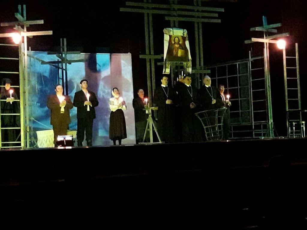 – «Дрогобицька Голгофа» засвідчує вірність правді, вірність Богові, – сказав у привітальному слові перед початком вистави владика Ярослав Приріз, єпископ Самбірсько-Дрогобицький.. Він відзначив, що хоча радянська влада і відважилася піднести каральний меч проти Церкви та віри Христової, проте Бог вкотре в історії показав, що пекельні ворота не здолають Христової Церкви.