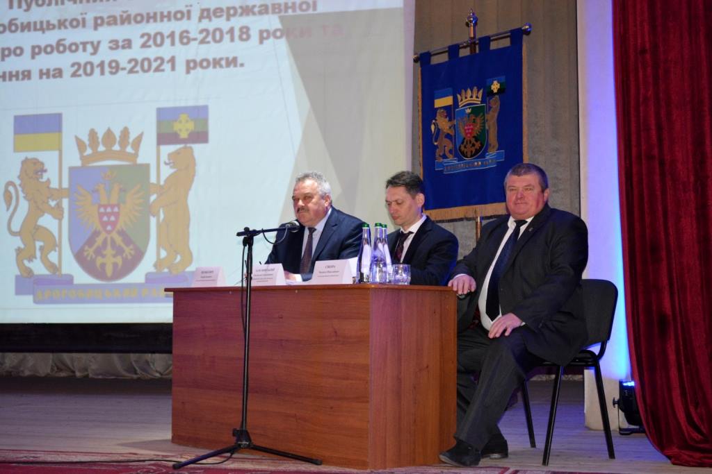 Близько години часу з загальних трьох годин зустрічі тривав виступ голови Дрогобицької РДА Андрія Шевкенича. За цей час було сказано про основні напрямки роботи: від ремонту доріг до зрушень в освіті та медицині, від реалізації соціально-економічних проектів до створення нових робочих місць, залучення інвестицій, придбання квартир для дітей-сиріт.