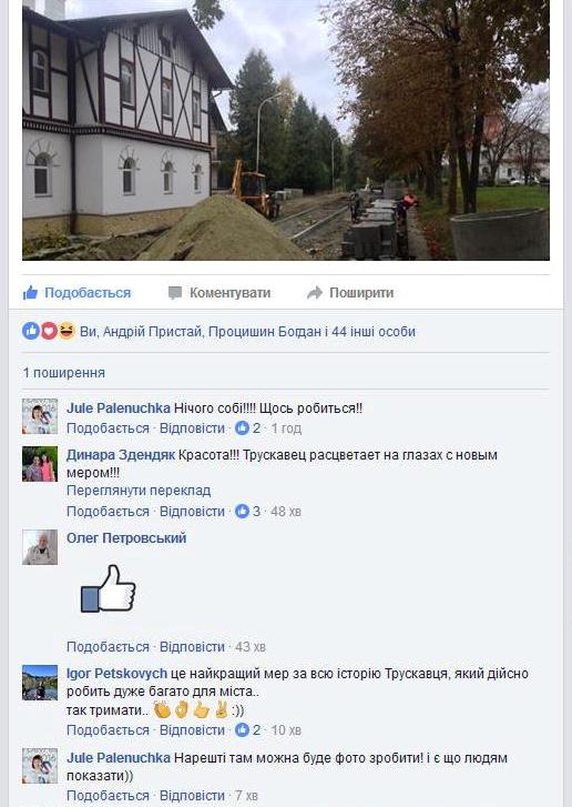 Можна згадувати про інші вулиці, які аж тепер дочекалися ремонту (Івасюка, Бандери і т.д.). Можна подавати метраж зробленого, зазначати скільки часу їхній стан нікого з влади не обходив, подавати фото до та після ремонту. Але чи варто? Для мешканців Трускавця та гостей нашого курорту головним є те, що відтепер дорогами та тротуарами ходити зручно і комфортно. Як і личить красивому європейському курорту, яким є наш Трускавець.