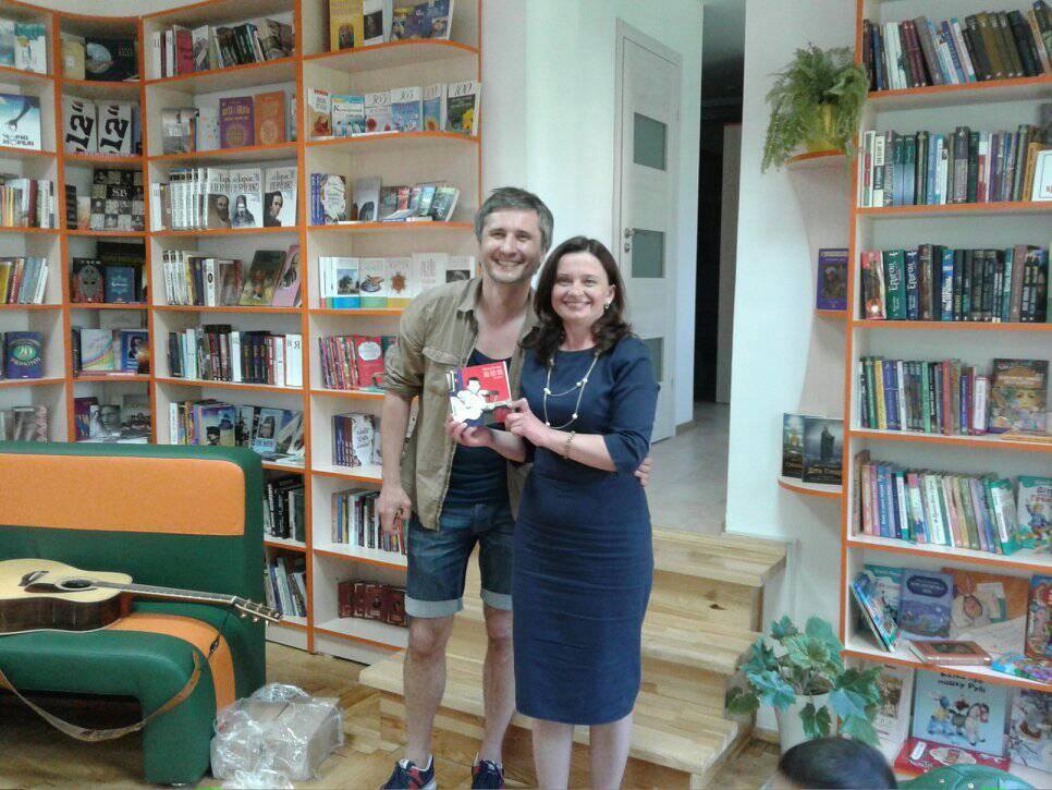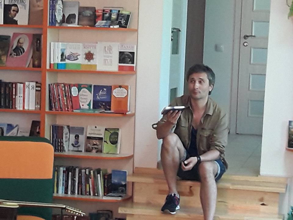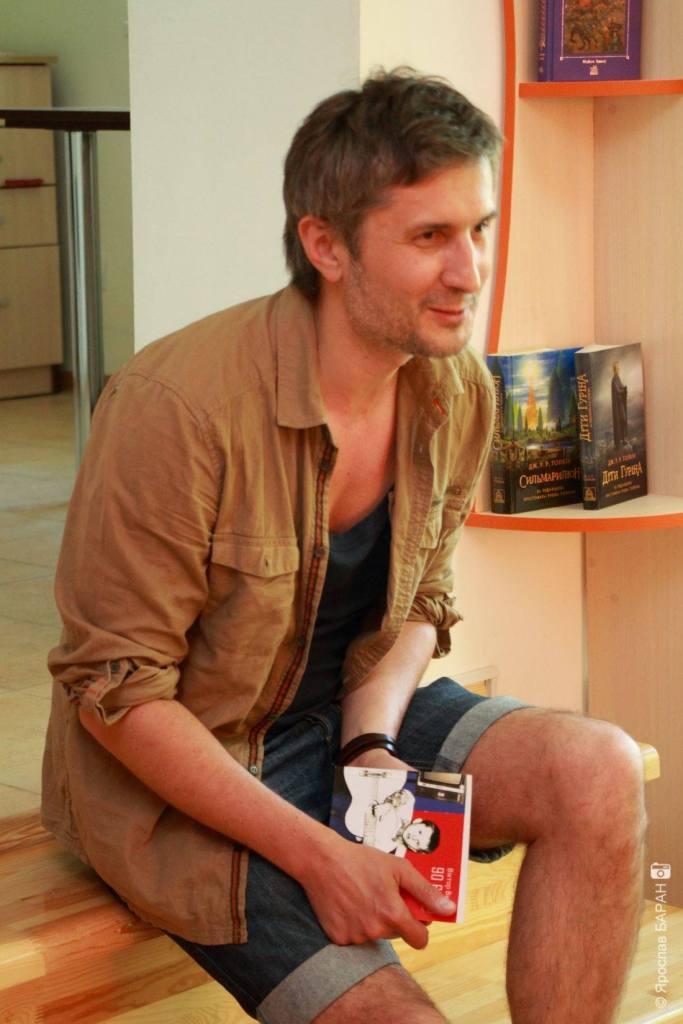 Автор зачитав уривок з книги про випускний у школі та зустріч сходу сонця, визнав свій гріх перед бібліотекою (інколи вирізав із журналів постери рок-зірок), про своє покоління пожартував, що це «модель легкої промисловості 70-х: корпус міцний, але операційна система слабка».