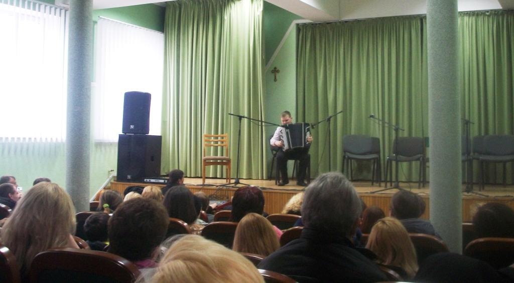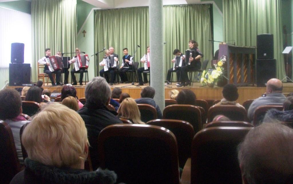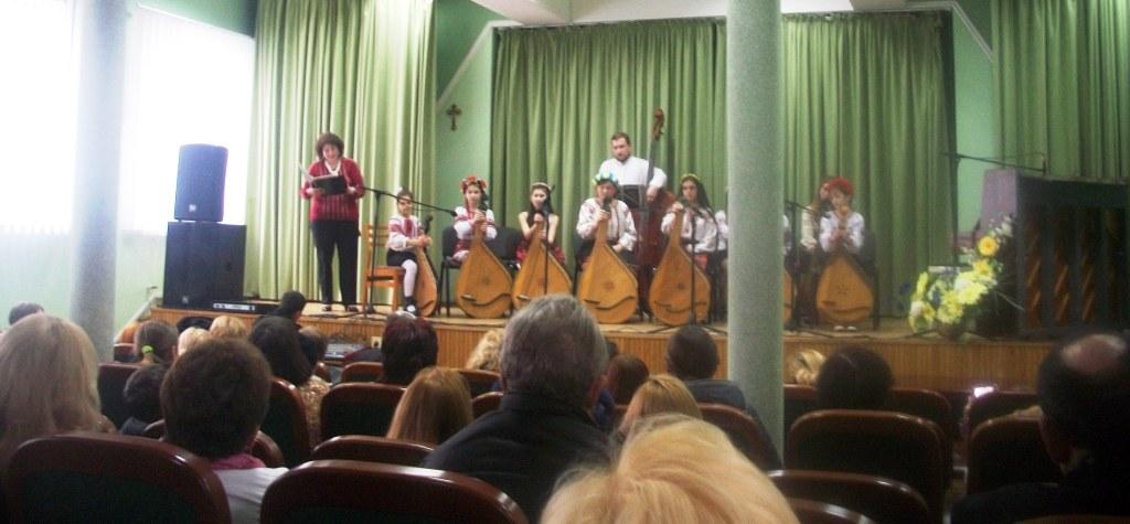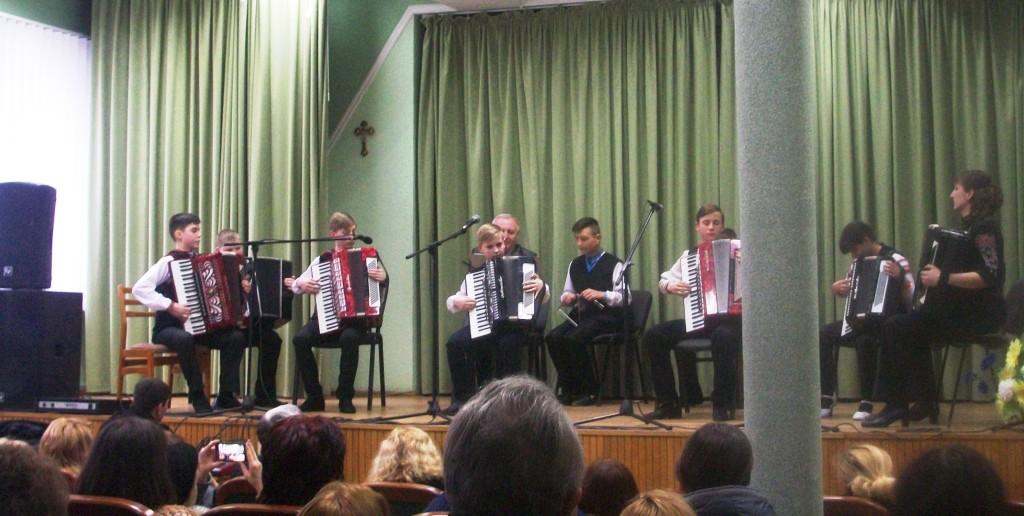 Відділ народних інструментів Трускавецької школи мистецтв ім. Р. Савицького (керівник відділу – Леся Баб`як) – один з найстаріших відділів школи, який постійно оновлюється у творчому пошуку. Акордеон, баян, бандура, гітара, сопілка, домра – зараз це ті інструменти, на яких навчається більше півсотні учнів. Ансамбль бандуристів, оркестр народних інструментів (з 2004 р. ансамбль народної музики «Славень») та ансамбль баяністів-акордеоністів – творчі колективи відділу, які ведуть активну концертну діяльність. Вони, а також недавно створений етно-гурт «Цюхів Верх» та солові виконавці склали основу концертної програми. А завершилася музична учта в Народному домі подячним словом заввідділу культури ТМР Тетяни Татомир та спільним виконанням Державного Гімну «Ще не вмерла Україна». Багато учасників концерту після його завершення пішло в курортний парк, щоб там взяти участь у флеш-мобі виконання гімну, який організував трускавецький осередок «Самопомочі».