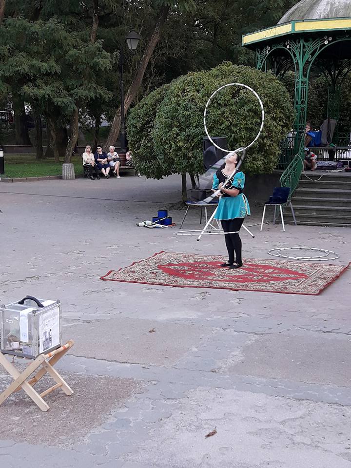 Благодійна акція на підтримку Ані Качмар не обмежилася самим лише ярмарком. У понеділок, 11 вересня, біля музичної альтанки в час пік (18.00) пройшов виступ Народного цирку «Каскад». Глядачі, а це переважно відпочивальники, котрі йшли на бювет чи з бювету, вкидали гроші у спеціальну скриньку.