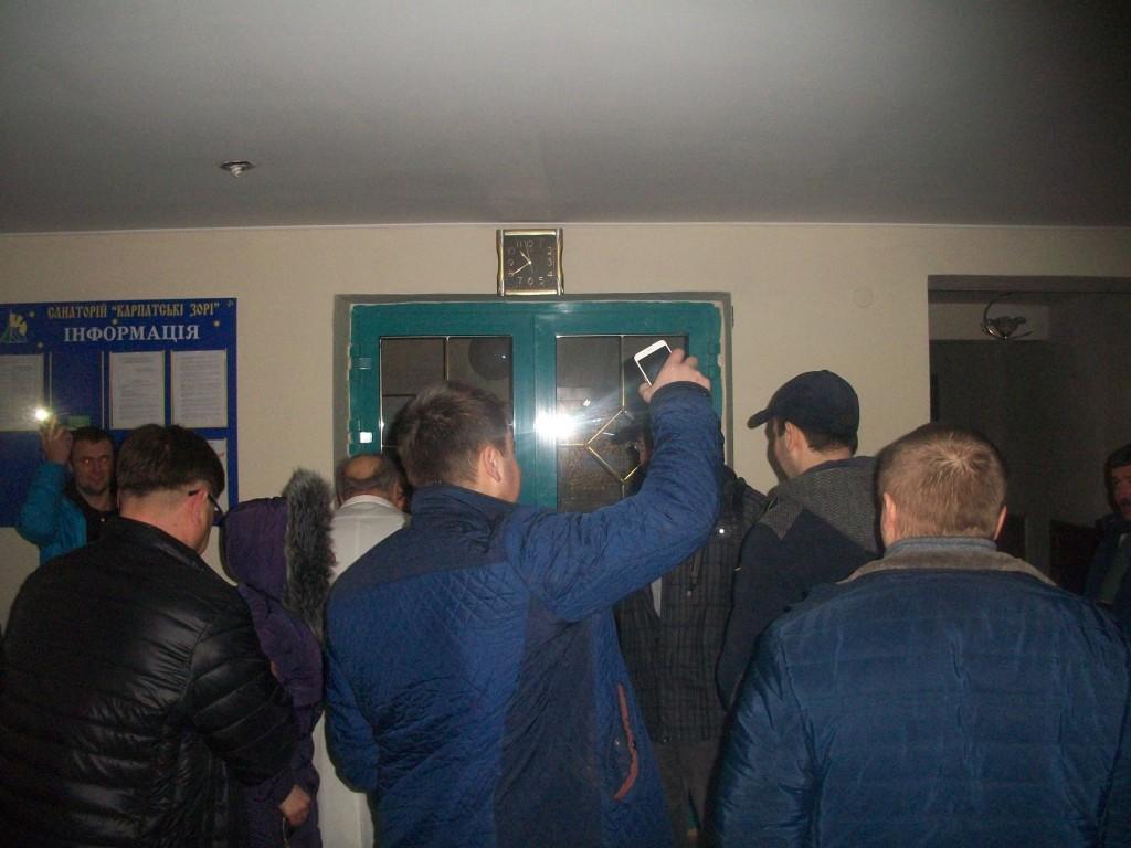 Пройшло сорок днів. 13 березня колона машин з Трускавця виїжджає в «Карпатські зорі». З автівок виходять депутати Трускавецької міської ради Андрій Кісак та Роман Бучкович, голова ГО «Трускавець-Автомайдан» Олександр Богуцький, журналісти «24 каналу», ЗІКу, «Трускавецького вісника», «Джерел Трускавця», «Truskavets Today». На годиннику біля 10.30, а в санаторії – нікого з адміністрації, нікого з персоналу окрім масажиста. Заходячи в приміщення, відчуваєш сирість та холоднечу. Освітлення відсутнє. Виявляється, за ці 13 днів березня 5 днів електропостачання не було взагалі – 3 дні минулого тижня і 2 дні тепер.