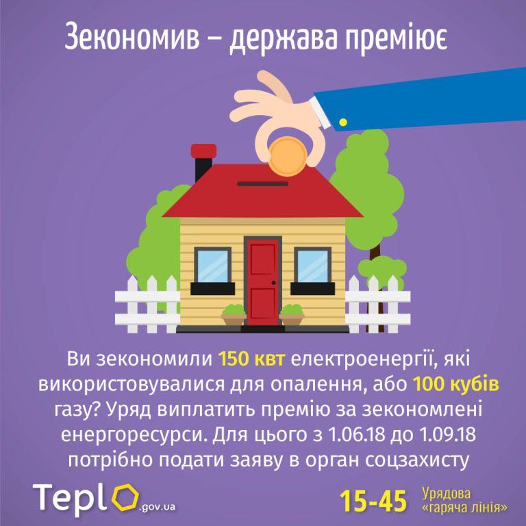 Субсидіантам, які вели енергоефективне домогосподарство, для отримання коштів необхідно буде до 1 вересня подати заяву у місцеве управління соціального захисту населення, на підставі якої здійснюватиметься виплата грошової винагороди за енергоефективність.