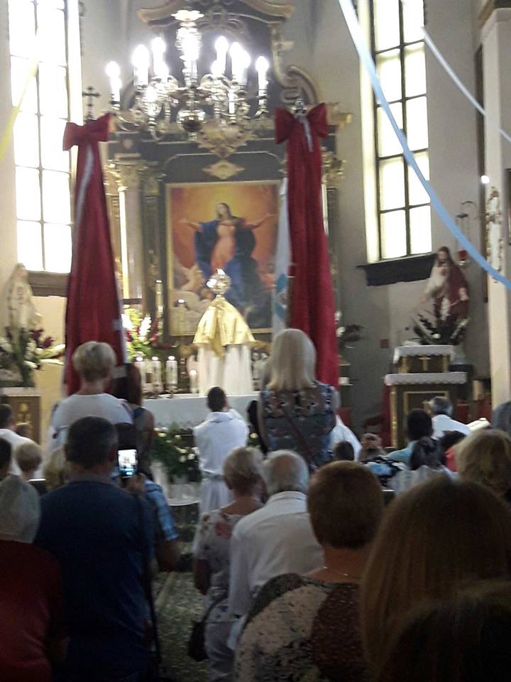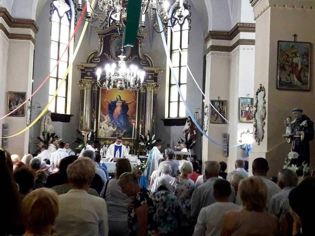 Tradycyjnie po obejściu procesji z Najświętszym Sakramentem wokół kościoła i po błogosławieństwie ziół na parafian i gości oczekiwał poczęstunek na świeżym powietrzu – kanapki, ciasteczka, woda słodka i mineralna, owoce, arbuz. Wierzący już w luźniejszej atmosferze mogli porozmawiać, witając jedni drugich z największym świętem maryjnym.