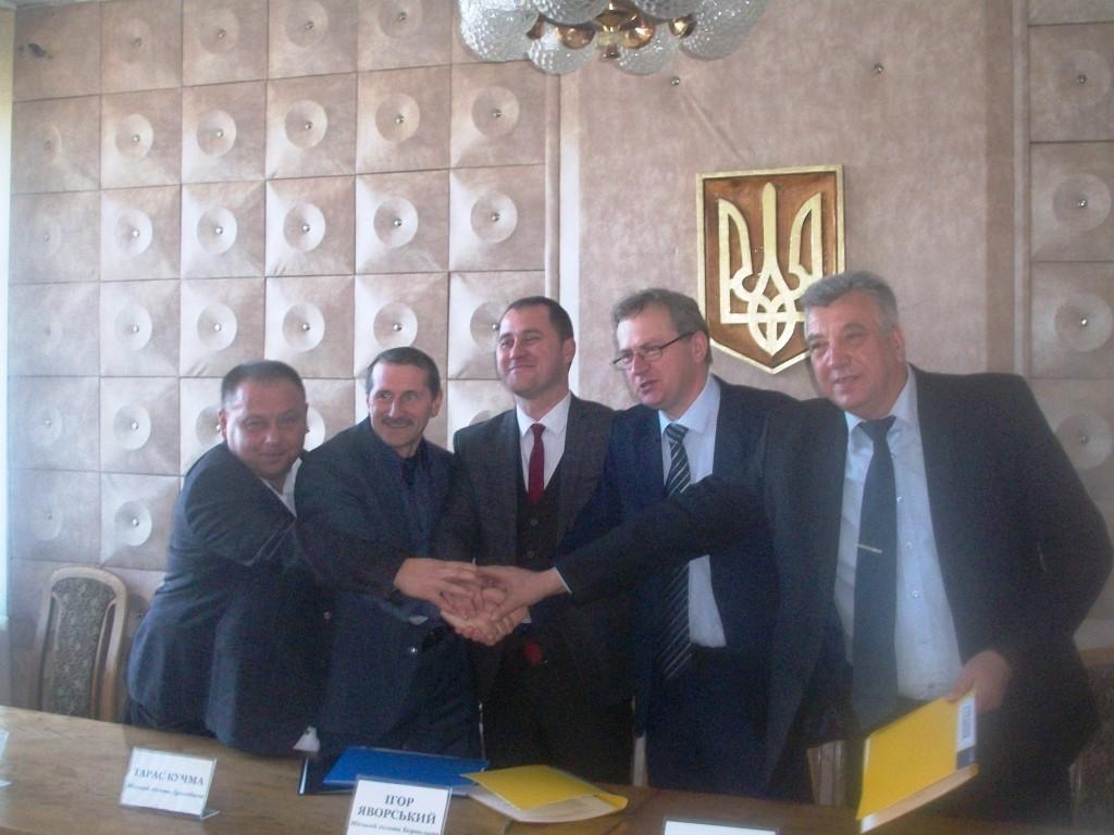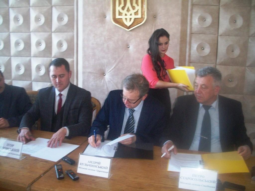 У четвер, 17 грудня, в Бориславі відбулося підписання Меморандуму про співпрацю. Свої підписи під документом поставили міський голова Дрогобича Тарас Кучма, міський голова Трускавця Андрій Кульчинський, міський голова Борислава Ігор Яворський, міський голова Стебника Петро Старосольський та селищний голова Східниці Іван Піляк. Захід проходив за участі представників засобів масової інформації.
