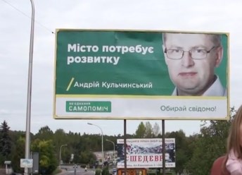Одним із найімовірніших кандидатів на посаду міського голови міста сьогодні вважають Андрія Кульчинського. Його бігбоди красуються по цілому місту. Але особливою оригінальністю не відзначаються. Кольори стандартні, партійні. Зелений колір «Самопоміч» використала вдало, адже він позитивно впливає на свідомість людей. Однак фрази використані в рекламі занадто банальні. Це просто констатація існуючого факту і переливання з пустого в порожнє. Фото кандидата також використане дуже невдало: обличчя виглядає неприродно «восковим», ще й голову йому обрізали.