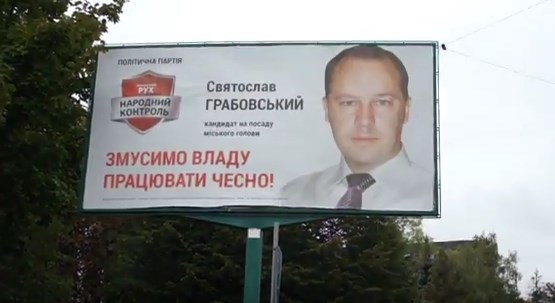 Добряче потішили автори бігборду від «Народного контролю», які розмістили свого кандидата на пост голови міста прямо навпроти міської ради. Фраза «Змусимо владу працювати чесно!» розміщена просто навпроти вікон ради. А першим, що бачить міський голова Трускавця Руслан Козир є обличчя Святослава Грабовського. Зважаючи на активну громадську діяльність останнього та відверту неприязнь, з якою останнім часом до нього ставиться пан Козир, то жалюзі на вікнах міської ради відкривають напевно рідко.