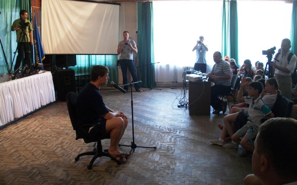 Одним з цікавих заходів у таборі «Первоцвіт» при НВК «СЗШ №2-гімназія», на якому вдалося побувати кореспонденту «Трускавецького вісника», стала зустріч з багаторазовим чемпіоном світу з плавання Олегом Лісогором. Зустріч пройшла в п’ятницю, 12 червня, гостя представив директор ДЮСК «Спортовець» Любомир Мацькович. З його виступу діти дізналися, що Олег Лісогор сім разів отримував почесний титул Чемпіона світу і 20 разів – титул Чемпіона Європи, а крім того брав участь у трьох Олімпіадах та в незліченній кількості різноманітних змагань в Україні.