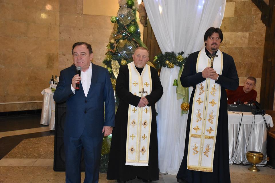 На початку вечері присутніх поблагословив та з напутнім словом виступив настоятель трускавецької парафії Покрови Пресвятої Богородиці (УГКЦ) о. Володимир Бондарчук. Слово мав також ще один представник духовенства – настоятель греко-католицької парафії Успення Пресвятої Богородиці в м. Стебник о. Володимир Лужецький. Отець зазначив, що нічого не буває просто так, і всі ці страви, які лежать перед присутніми на щедрих столах, не впали з неба, а коштують великих грошей, тож від імені 180 учасників вечері подякував Левові Грицакові за меценатство.