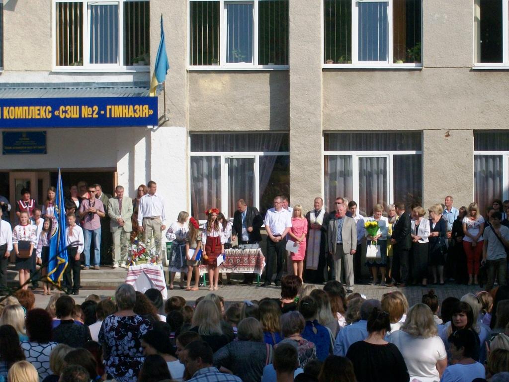 Свято Першого Дзвоника в навчально-виховному комплексі «СЗШ №2-гімназія» міста Трускавця пройшло при хорошій погоді. Цьогоріч гімн України співали без музичного супроводу, слова головної пісні держави лилися багатоголоссям з вуст схвильованих учнів, батьків, вчителів. Хвилиною мовчання та сумною піснею «Пливе кача по Тисині» пом`янули присутні загиблих на Майдані та під час війни, зокрема і колишнього учня трускавецької-школи-гімназії Сергія Шевчука. Благословив учнів отець-декан Петро Івасівка, зі словами вітання та побажаннями виступили міський голова Руслан Козир, начальник відділу освіти ТМР Михайло Шубак, голова Шкільної ради Андрій Кульчинський, директор школи Роман Гудзеляк. Кращі учні та педагоги були нагороджені відзнаками, грамотами та дипломами.