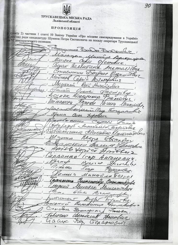 Сьогодні, 29 січня, відбулася коротка зустріч секретаря Трускавецької міської ради Петра Шумина з кореспондентом Інтернет-видання «Трускавецький вісник». Петро Євстахович сам висловив ініціативу передати для публікації на сайті документ, якого не знайдеш на офіційному веб-сайті мерії. Це – пропозиція про розгляд кандидатури депутата Петра Шумина на подання секретаря ради.